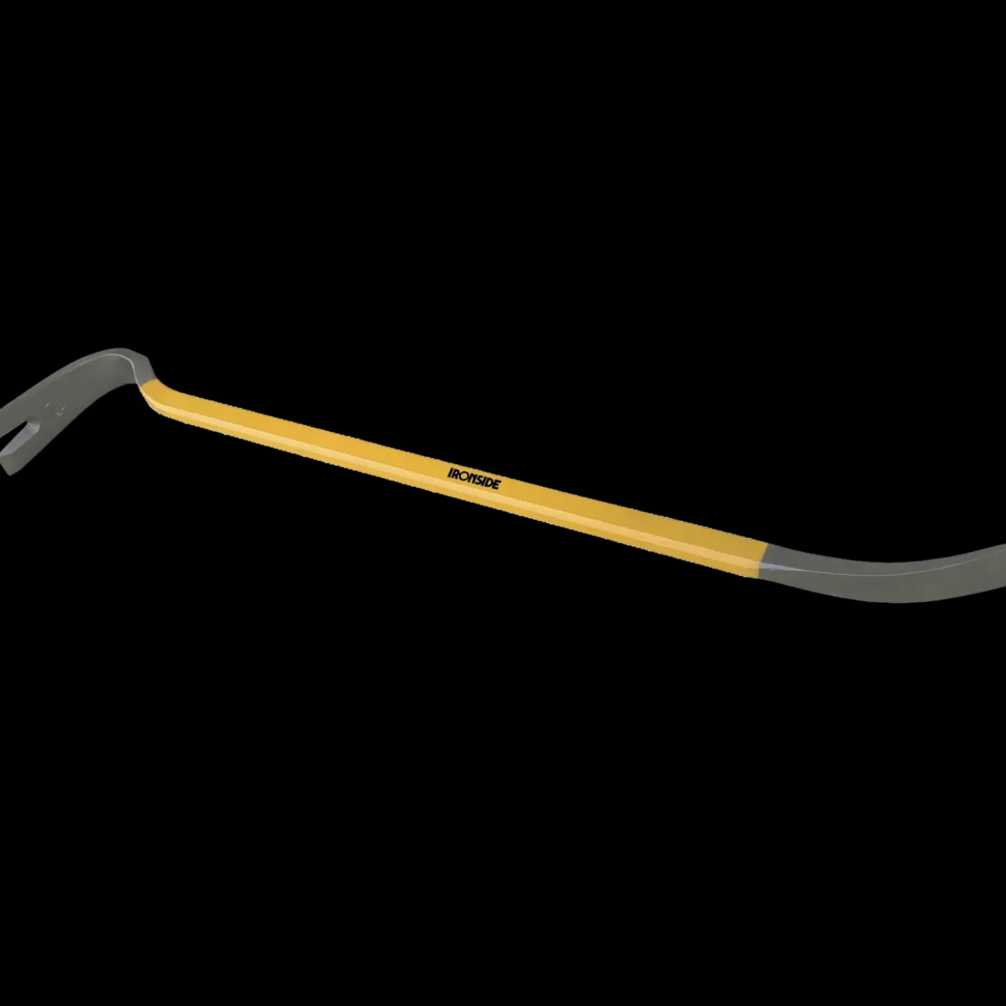 Koben i ottekantet hærdet CRV-stål. HRC 42-48. Ekstra tynde ender. Den ene ende med kløft og den anden med mejsel. Gult lakeret skaft.