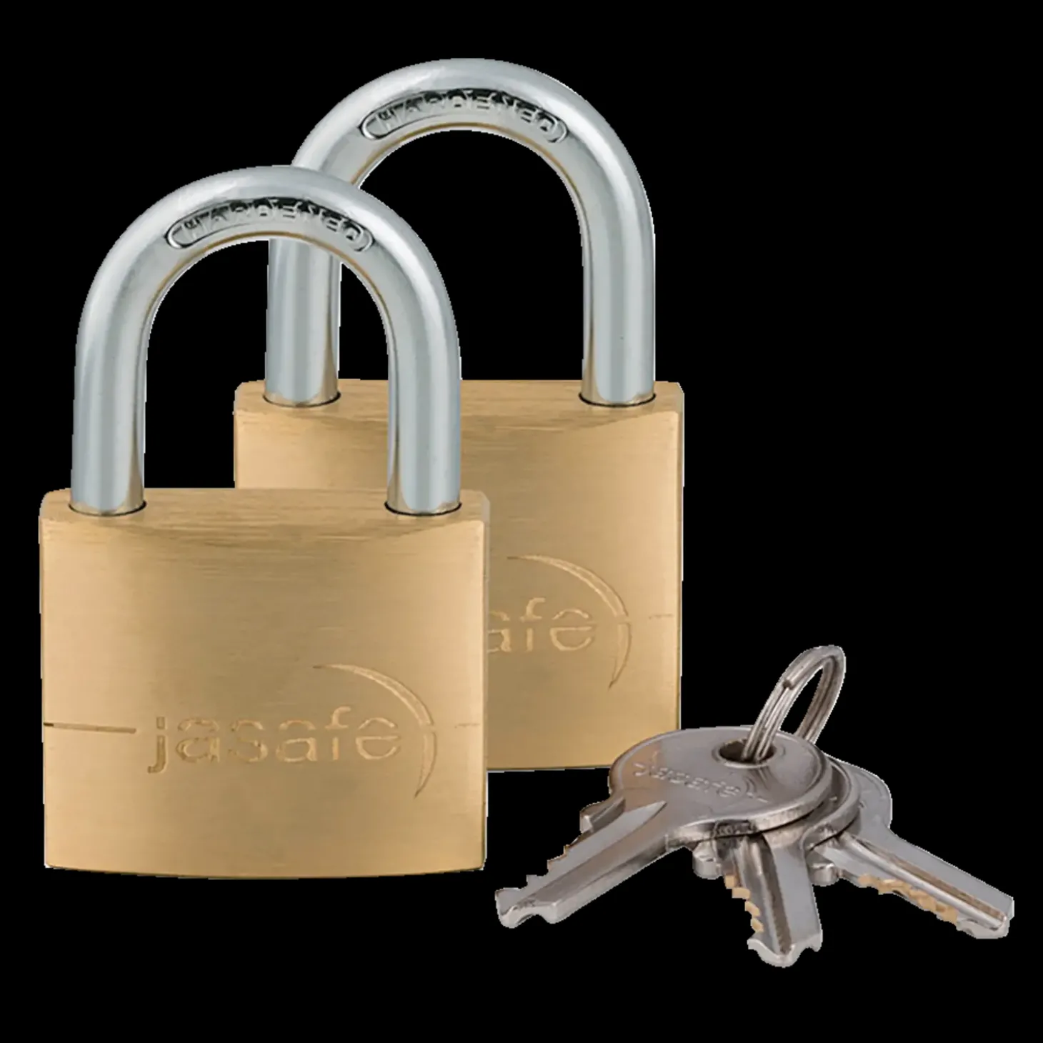 Jasafe messing hængelås med hærdet stålbøjle. Inkl. 3 nøgler