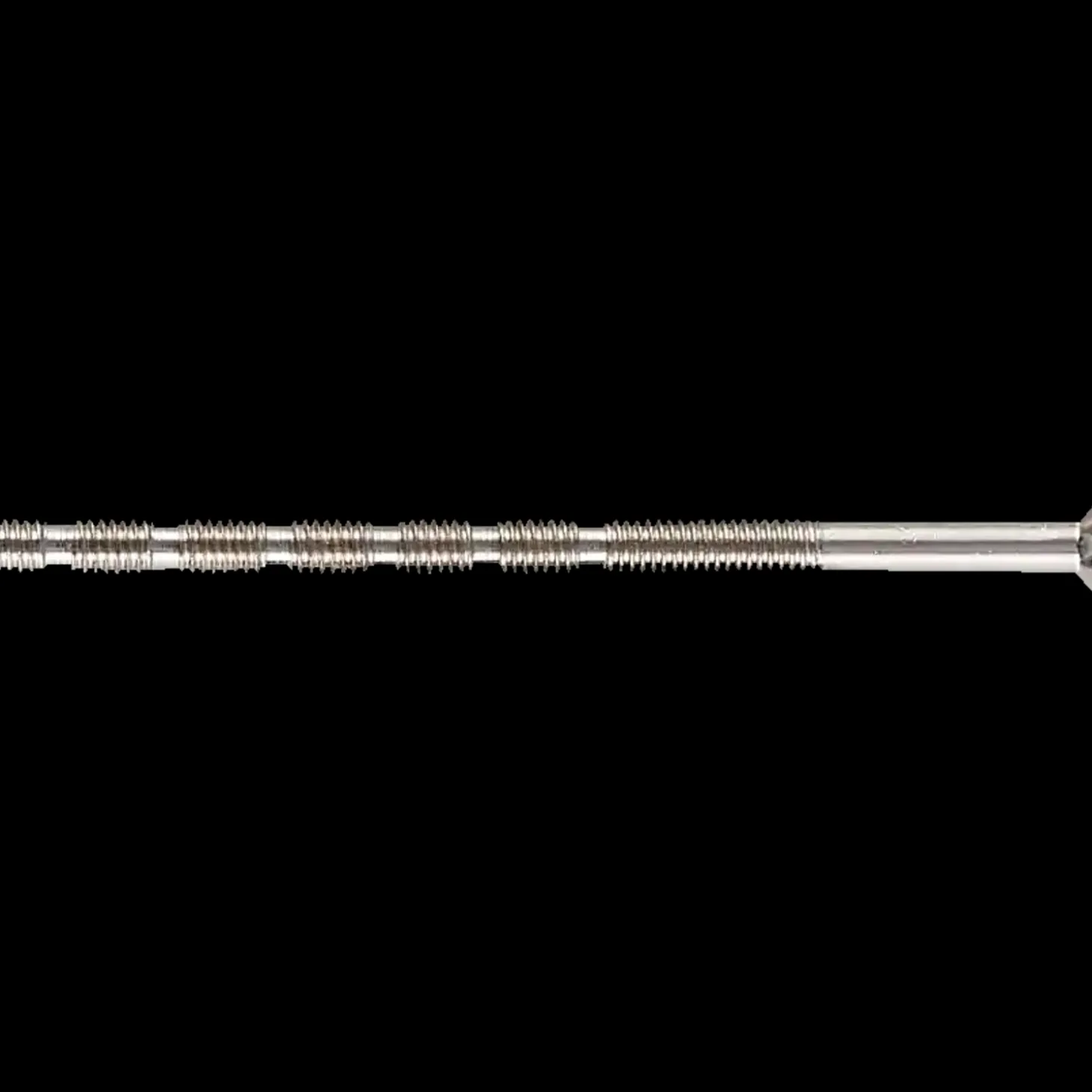 M4 knækskrue med børstet overflade. Længden er 90 mm med knæk for hver 5. mm. Torx 15 kærv.