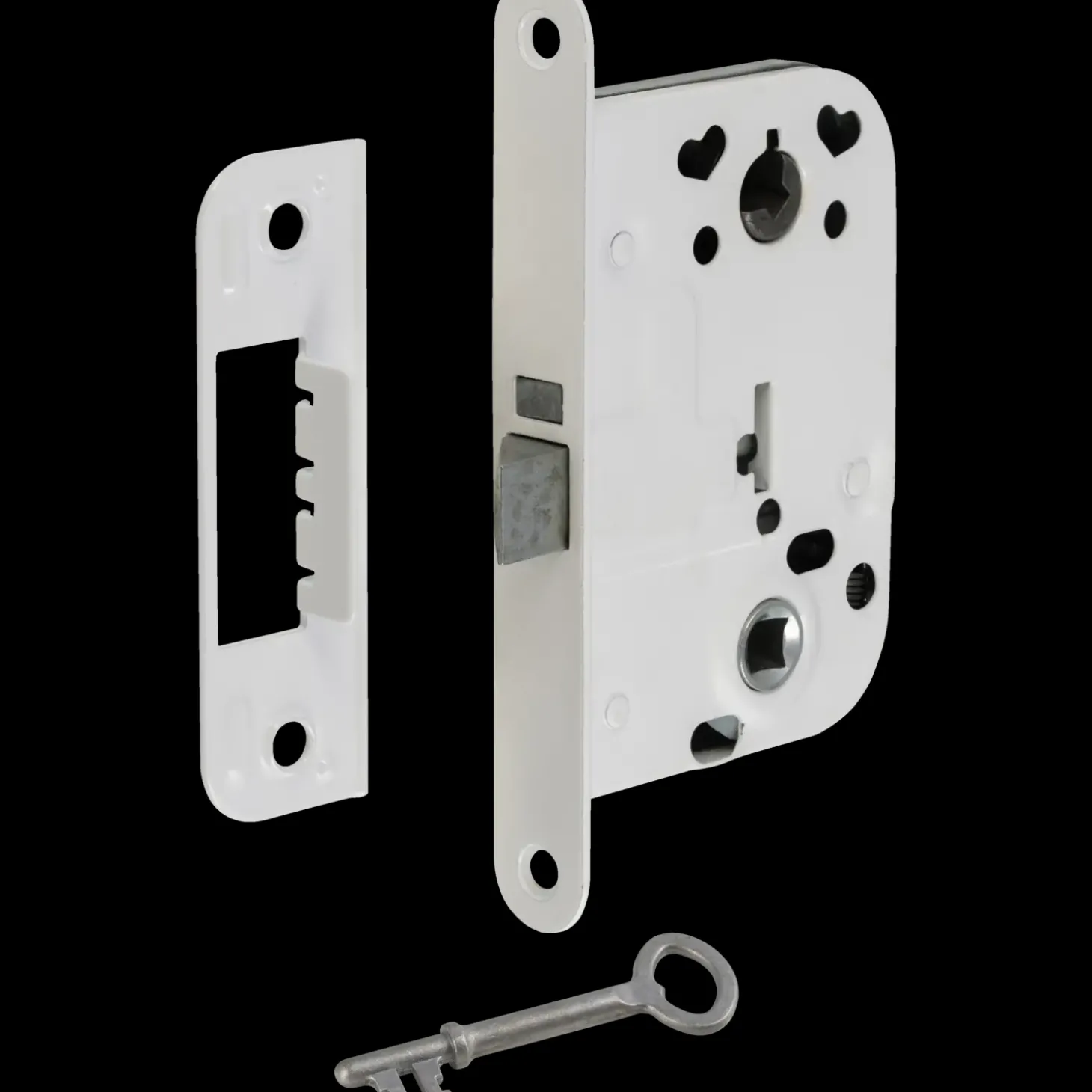 Jasa låsekasse til mellemdørslås med rigle 14 mm fremspring. Låsekassen anvendes til indvendige døre og er inkl. slutblik og skruer