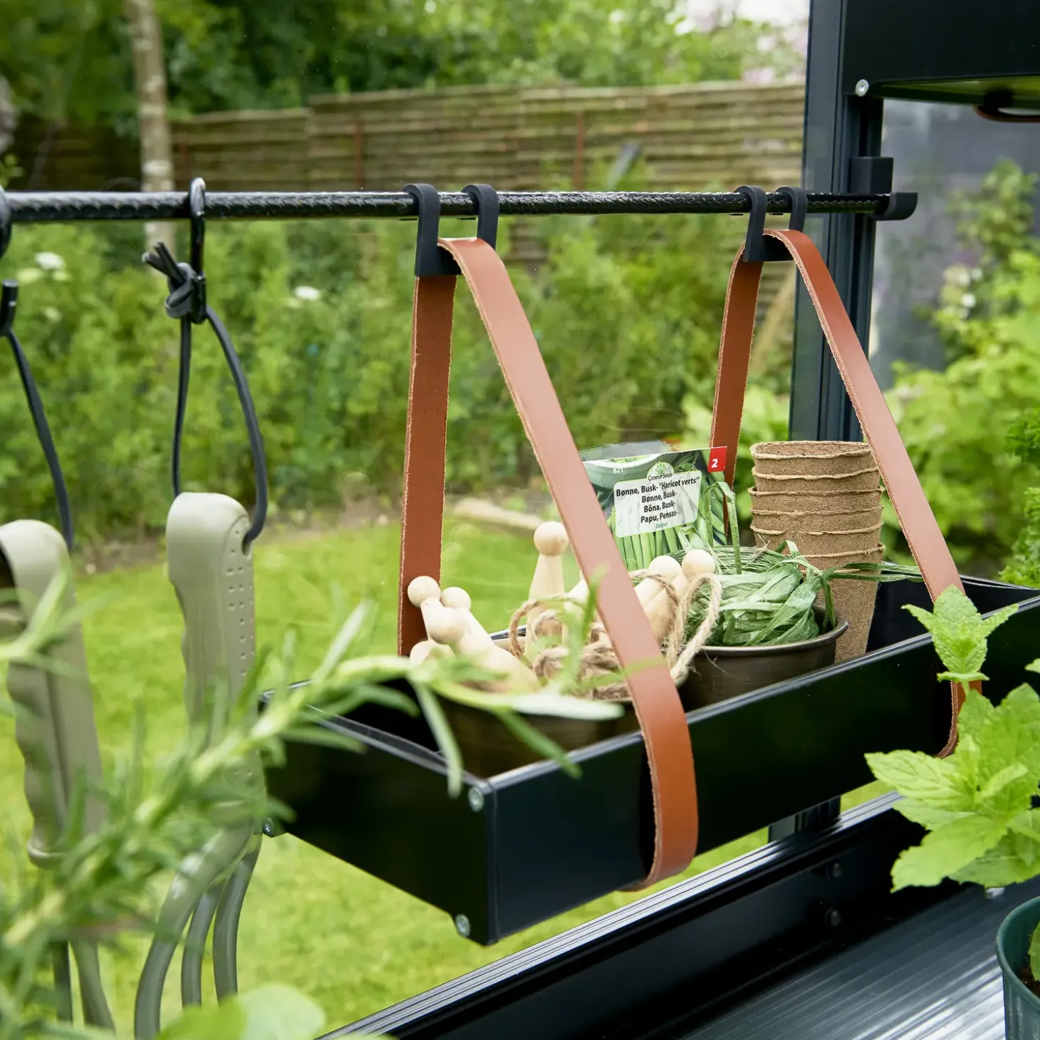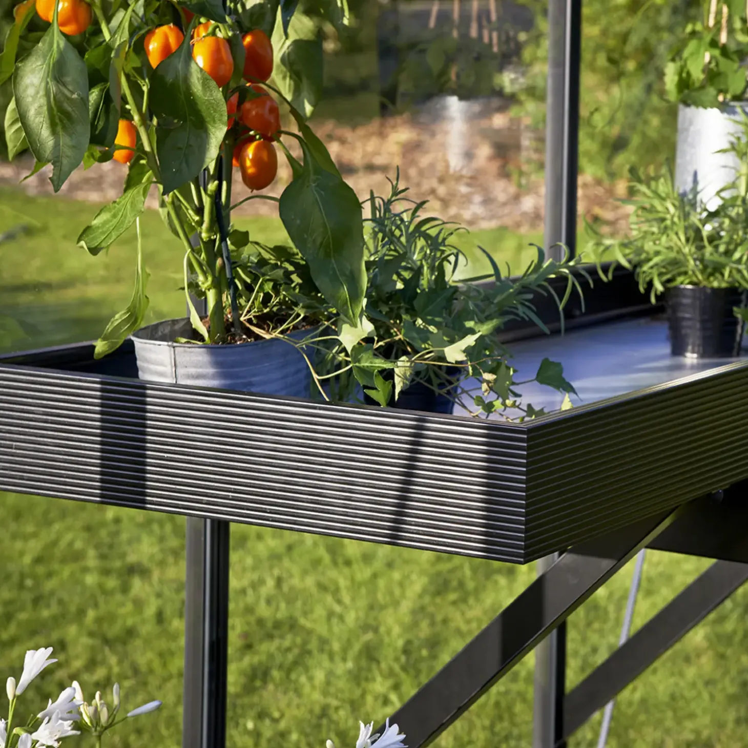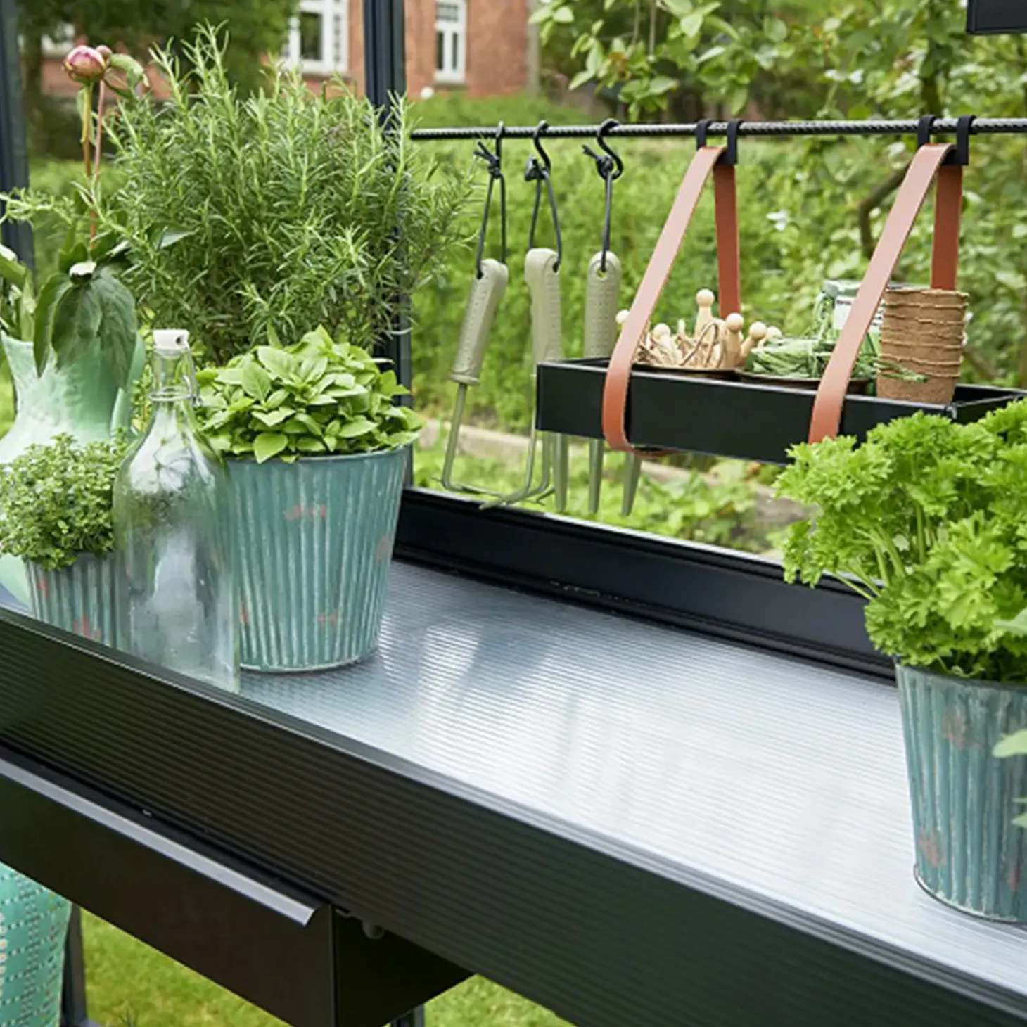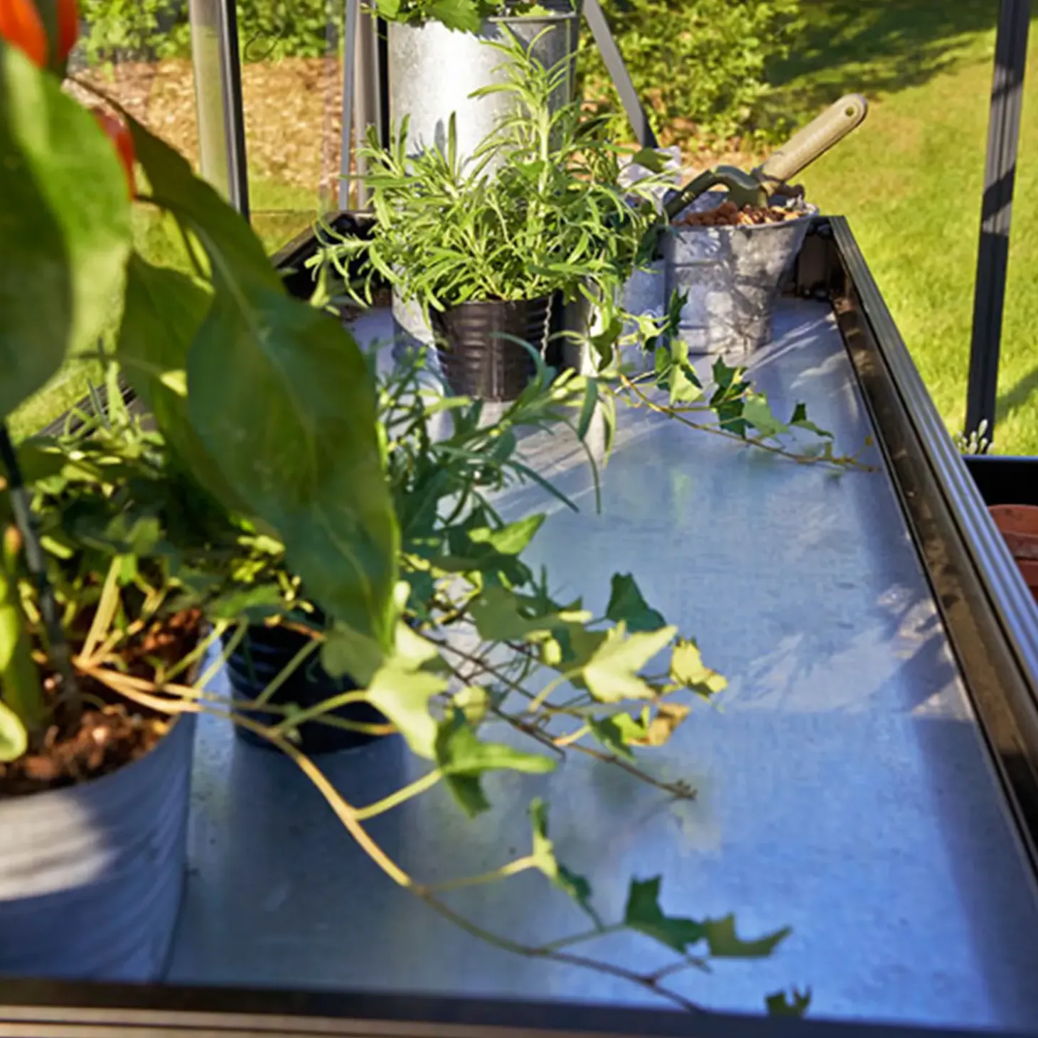 Drivhusbord til montering i drivhusets profiler. Bordet er en ideel arbejdsplads når der skal sås og prikles.