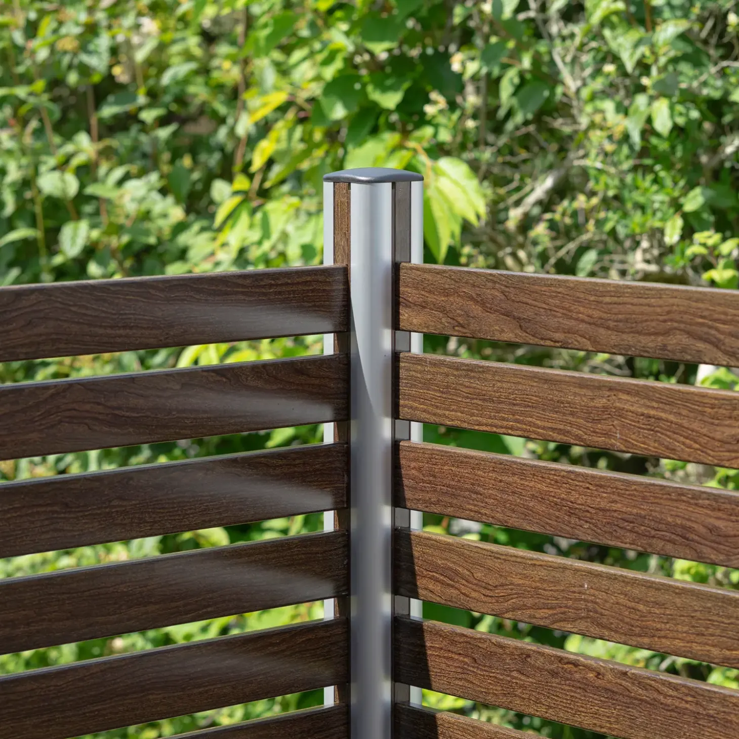 Alt er i aluminium og derfor yderst let at holde og meget langtidsholdbart. Alu Design startsæt med Alu stolper, hvori man isætter en skinne pr. stolpe og herefter lameller, således at man selv bestemmer højden på hegnet. Alu Design startsæt leveres med 2 alu stolper skinner, lameller, afstandsstykker og tophætte. Alu design startsæt er UV bestandig og holder derved sin originale farve, har træstruktur og er meget let at montere. Med Alu Design Panel startsæt får du et smukt og meget stærkt hegn med en simpel opbygning og et enkelt design.