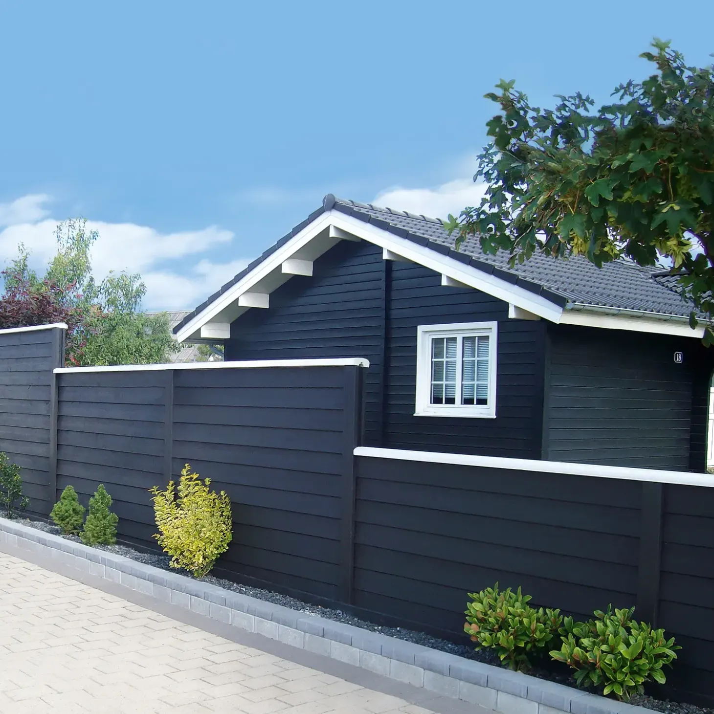 Granbræt til klinkbeklædning, høvlet på alle 4 sider og grundmalet sort, bør efterbehandles med træbeskyttelse.