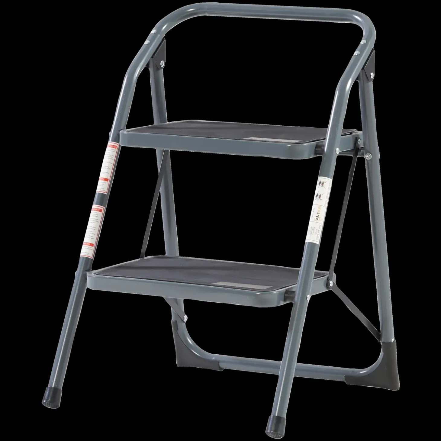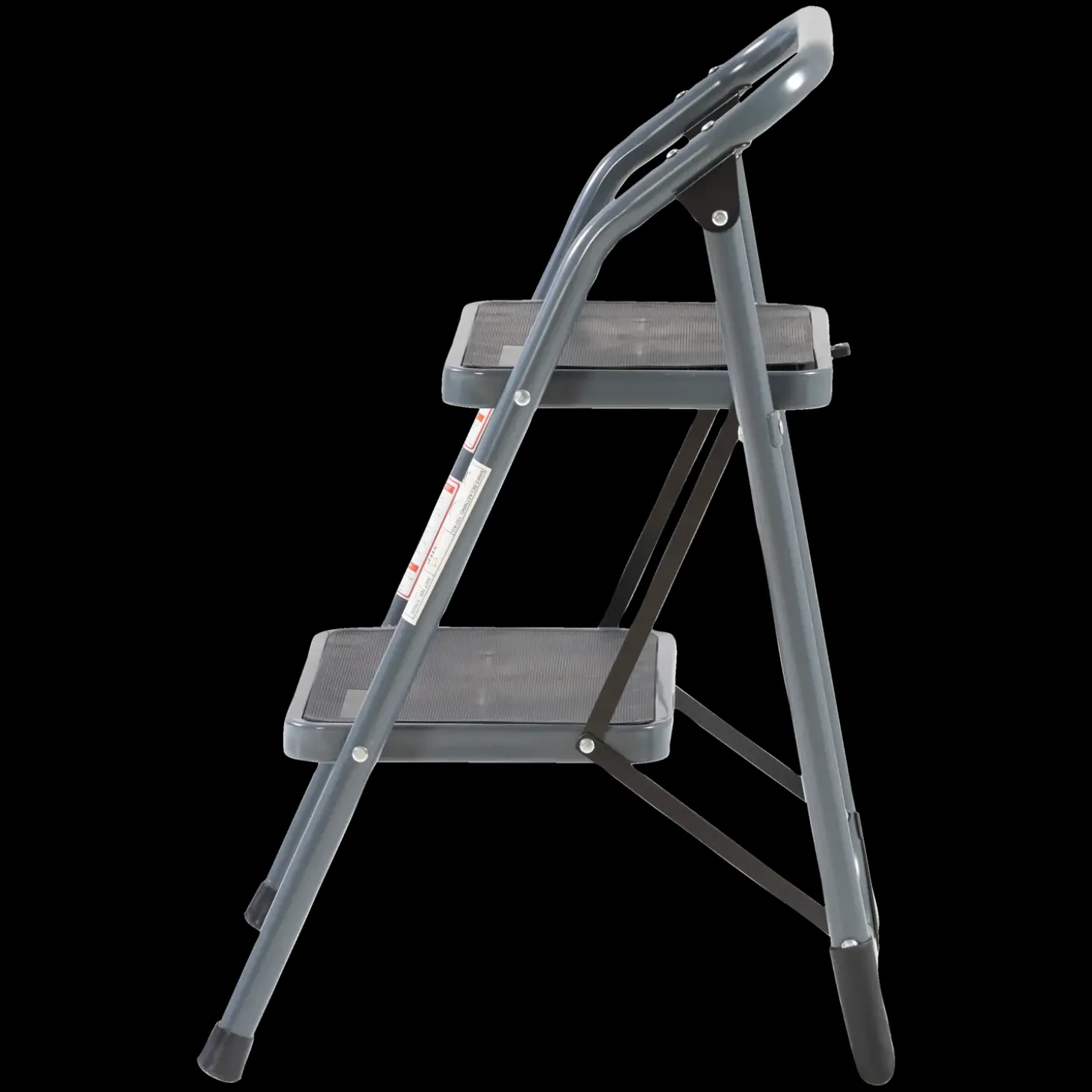 2 trins sammenklappelig køkkenstige / taburet. Trinnene er belagt med sort skridsikkert vinyl.