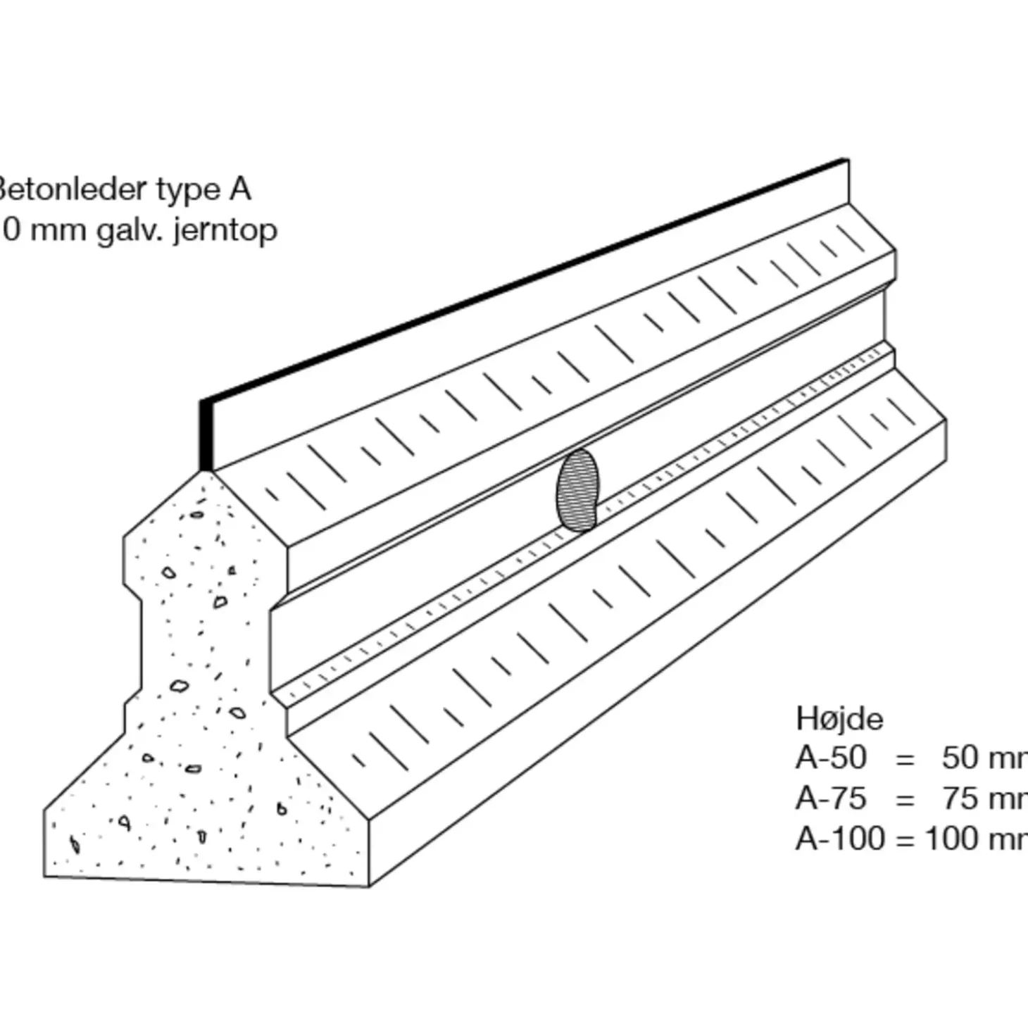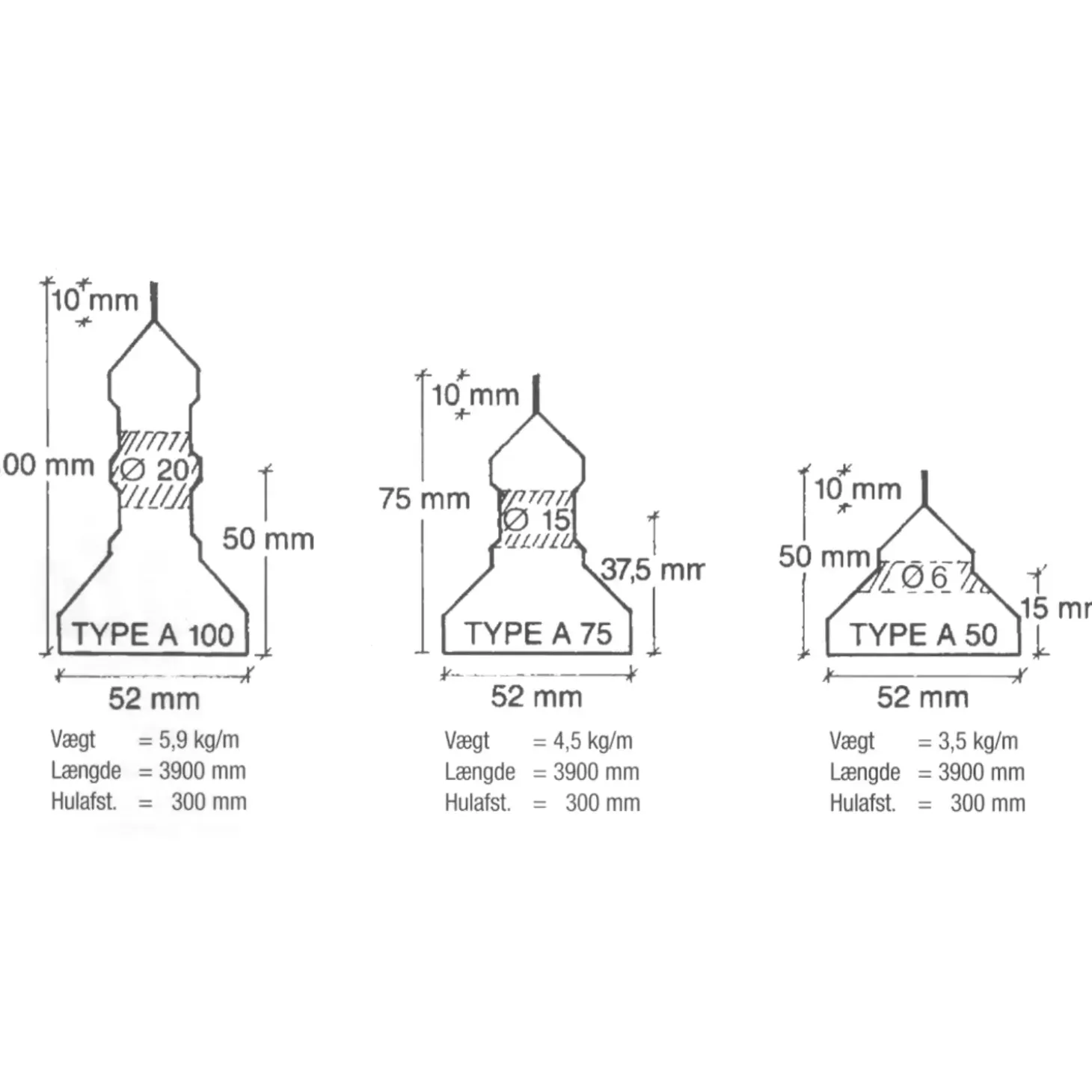 - Højden af topskinnen er 10 mm og tykkelsen 1,25 mm.