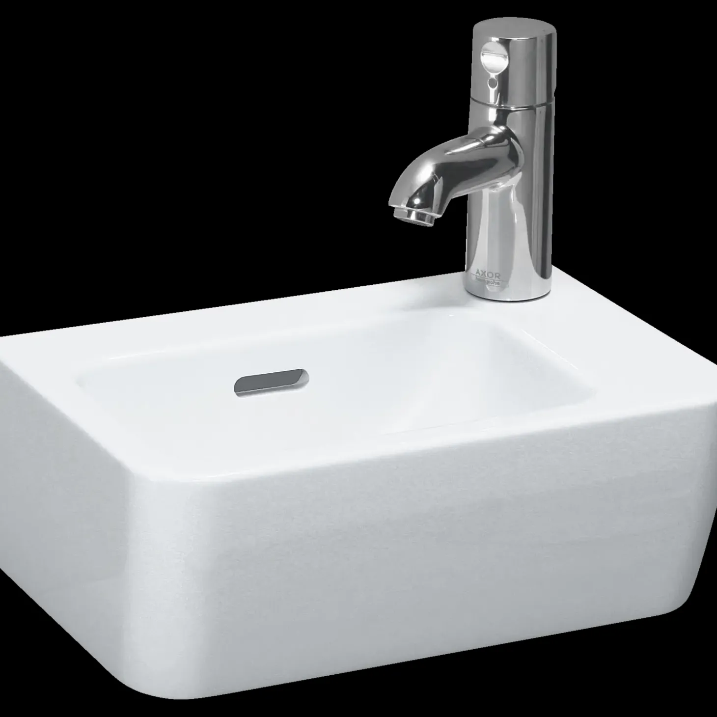 Lille håndvask fra LAUFENs PRO-serie, som er udviklet i samarbejde med den schweiziske designer, Peter Wirz. Takket være den kompakte udformning, der måler små 36×25 cm, er håndvasken ideel til mindre badeværelser, som man bl.a. finder i mange storbyer eller på gæstebadeværelset. Bemærk at både overløb og underside er glasseret.