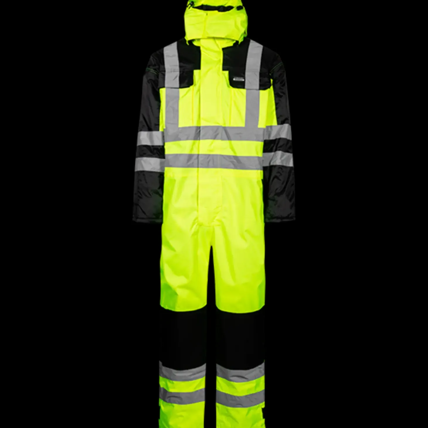 Hi-Vis vinterkedeldragt i kraftig Nylon kvalitetmed quiltet foer. Åndbar, vind og vandtæt med tapede sømme.