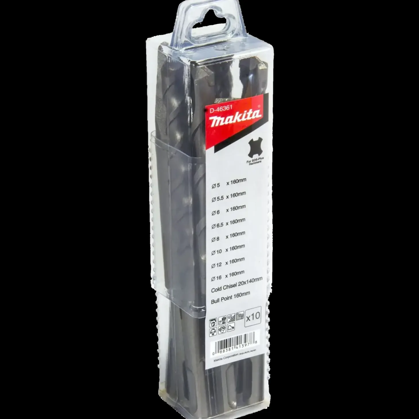 Indeholder SDS plus bore – mejselsæt i PVC rør.