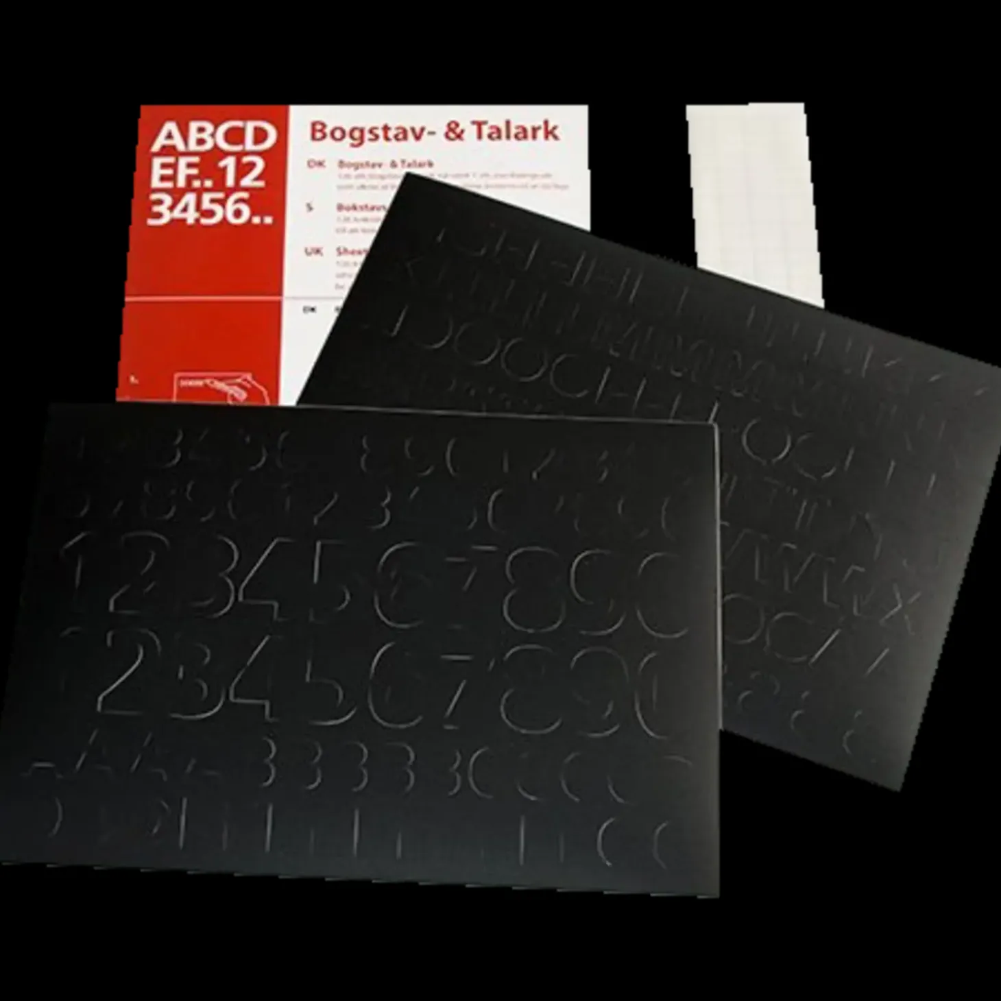 Sort, selvklæbende foliebogstaver og tal til postkasser eller andre overflader.