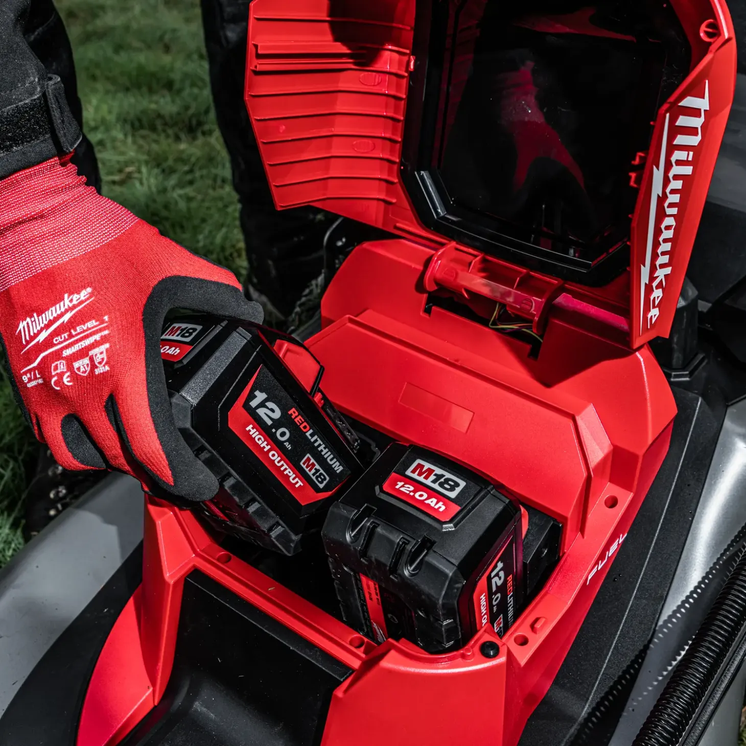 - Bruger 2 x 18V-batterier for uovertruffen kraft og ydelseKlipper op til 2000 m² på en enkel opladning af to M18™ HIGH OUTPUT™ 12,0 Ah-batterier