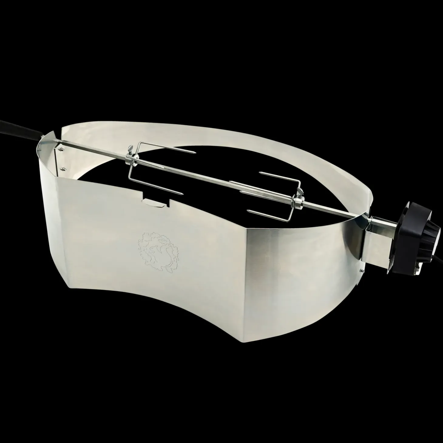 Skærm, spyd og gafler er fremstillet i rustfrit stål.Med en jævn rotation opnås nemt og enkelt et smukt, lækkert og ensartet grillet produkt.Rotisseriet er nemt at rengøre og alle dele undtagen motor tåler opvaskemaskine.Designer: Klaus Rath