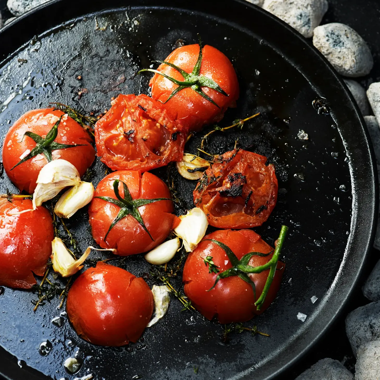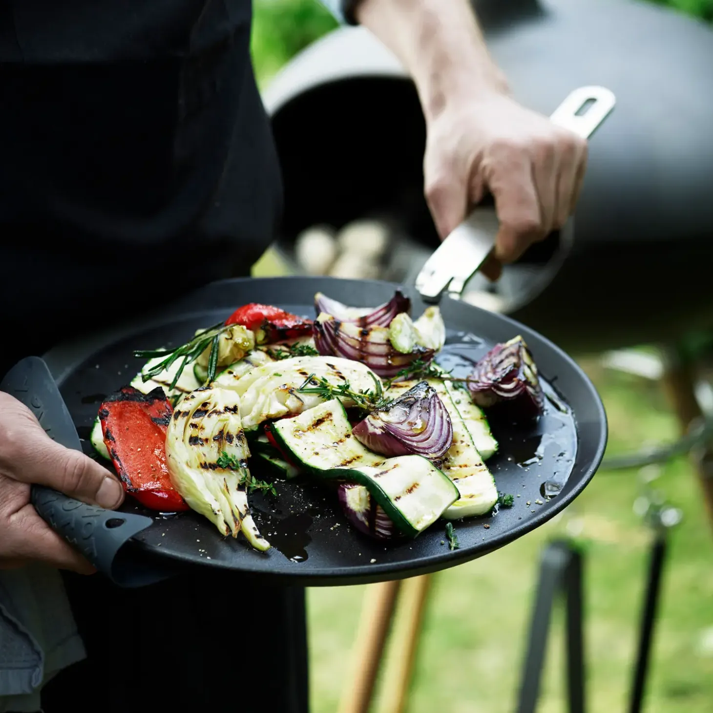 Stegetallerknen er fremstillet i emaljeret støbejern, og den porøse struktur fordeler varme og smag som intet andet materiale formår.