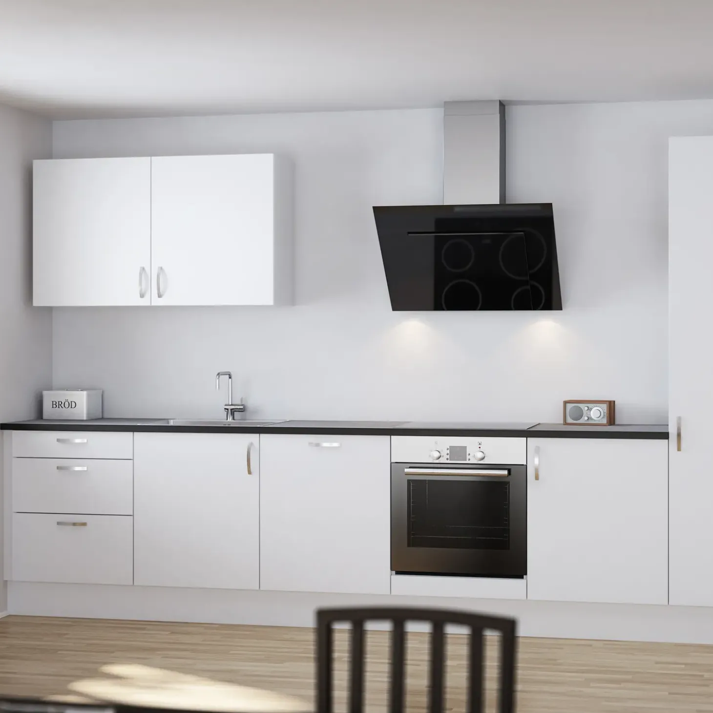 Alle viste køkken sæt er eksklusiv bordplade, greb, vask, armatur og hvidevarer.