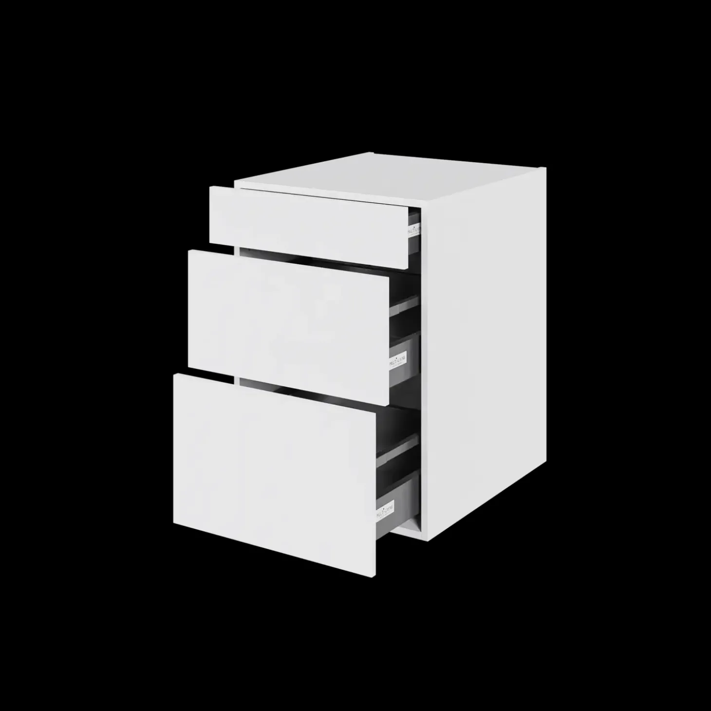 40cm skuffeskab m/3 skuffer med fuldudtræk og softluk.