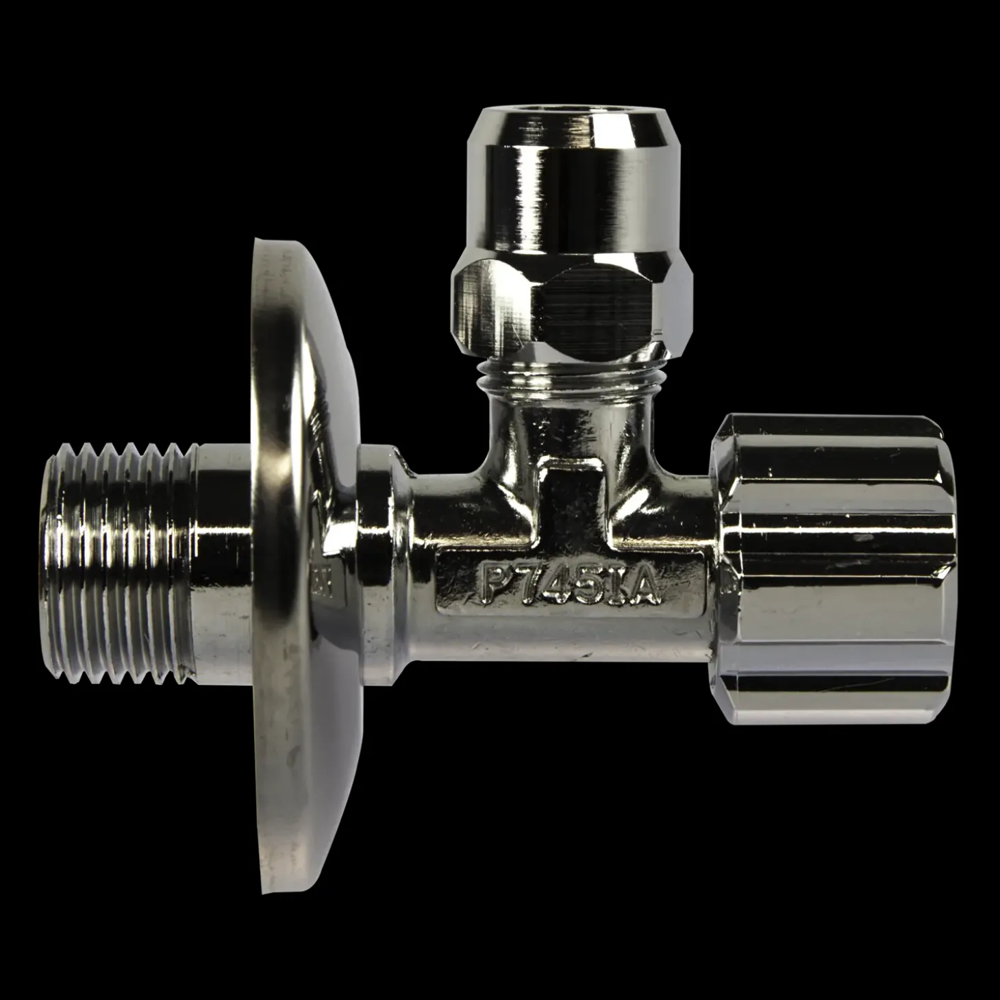 Vinkelventil med roset. Anvendes ved montering af armaturer.