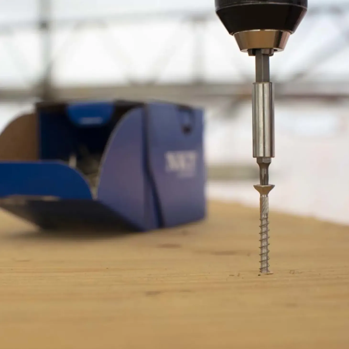 Groft trægevind giver hurtig iskruning og sikrer høje udtræksværdier. Godkendt til anvendelse i bærende konstruktioner.