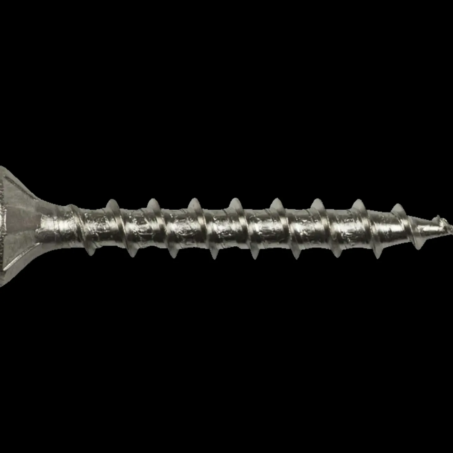 Skruen er fremstillet i syrefast rustfrit stål. Kvalitet A4, som er ideelt til trykimpræneret træ og i barske miljøer.