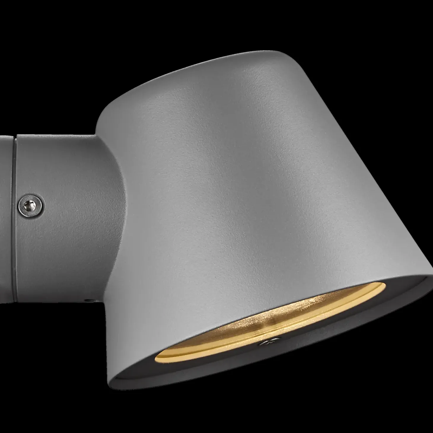 Her får du en væglampe, der med sine bløde former giver et elegant design. Fremstillet af grålakeret aluminium er denne væglampe ideel til indkørslen, hoveddøren eller garagen.