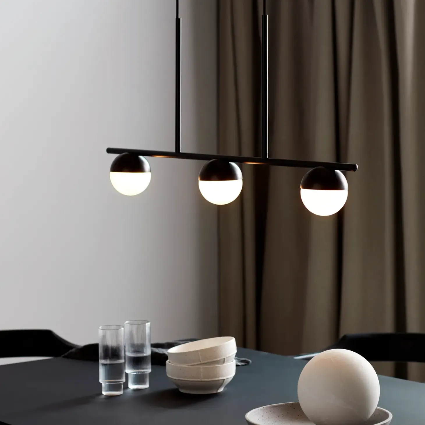 Contina er en minimalistisk langpendel med tre lyskilder i sort mat metal, som er perfekt over det lange spise- eller køkkenbord. Det smalle design gør, at pendlen ikke fylder i rummet eller tager udsyn.