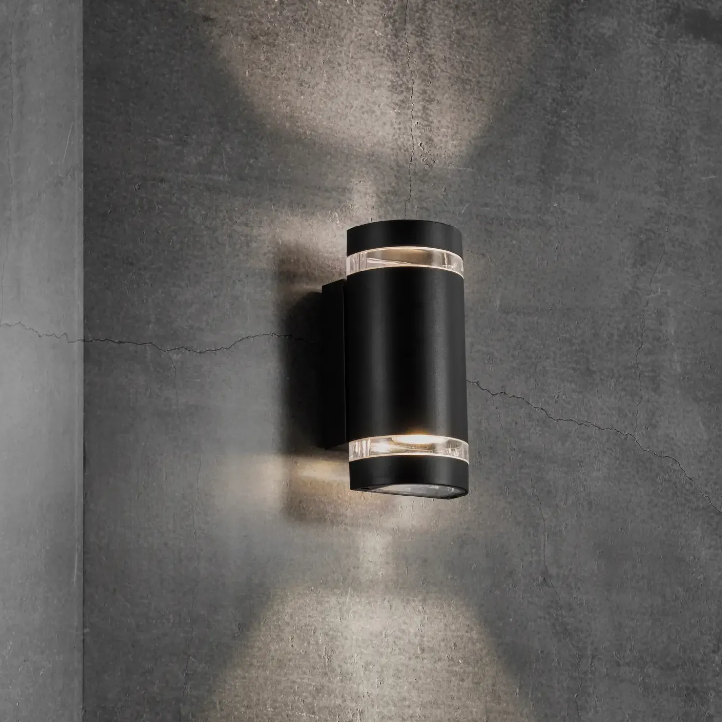 Udendørs væglampe med et moderne look. Lampen giver et godt lys og kaster lyset både op og ned ad væggen. I samme serie fås også bedlampe og en enkelt væglampe.