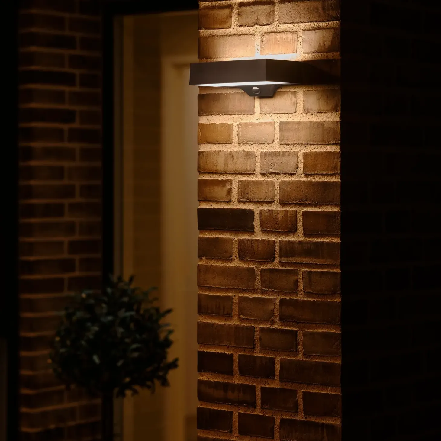 Monay er en ledningsfri, soldrevet væglampe i et moderne og strømlinet design. Lampen oplades ved hjælp af sollys om dagen og tænder, når den registrerer bevægelse, når det er mørkt. Du kan vælge mellem to sensorindstillinger: til/fra eller fra nattelys til fuld belysning, når du går forbi. Den er perfekt at placere langs facaden på dit hus eller ved siden af din fordør, så du har lys, når du kommer hjem – uden at skulle lede efter en lyskontakt i mørket. Nem installation uden behov for ledninger. USB-kabel til hurtig opladning medfølger.