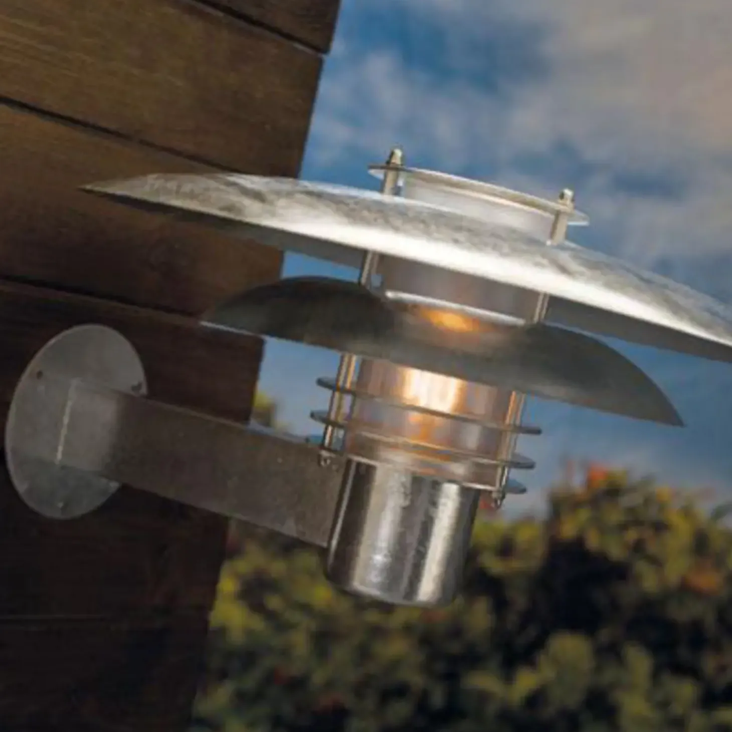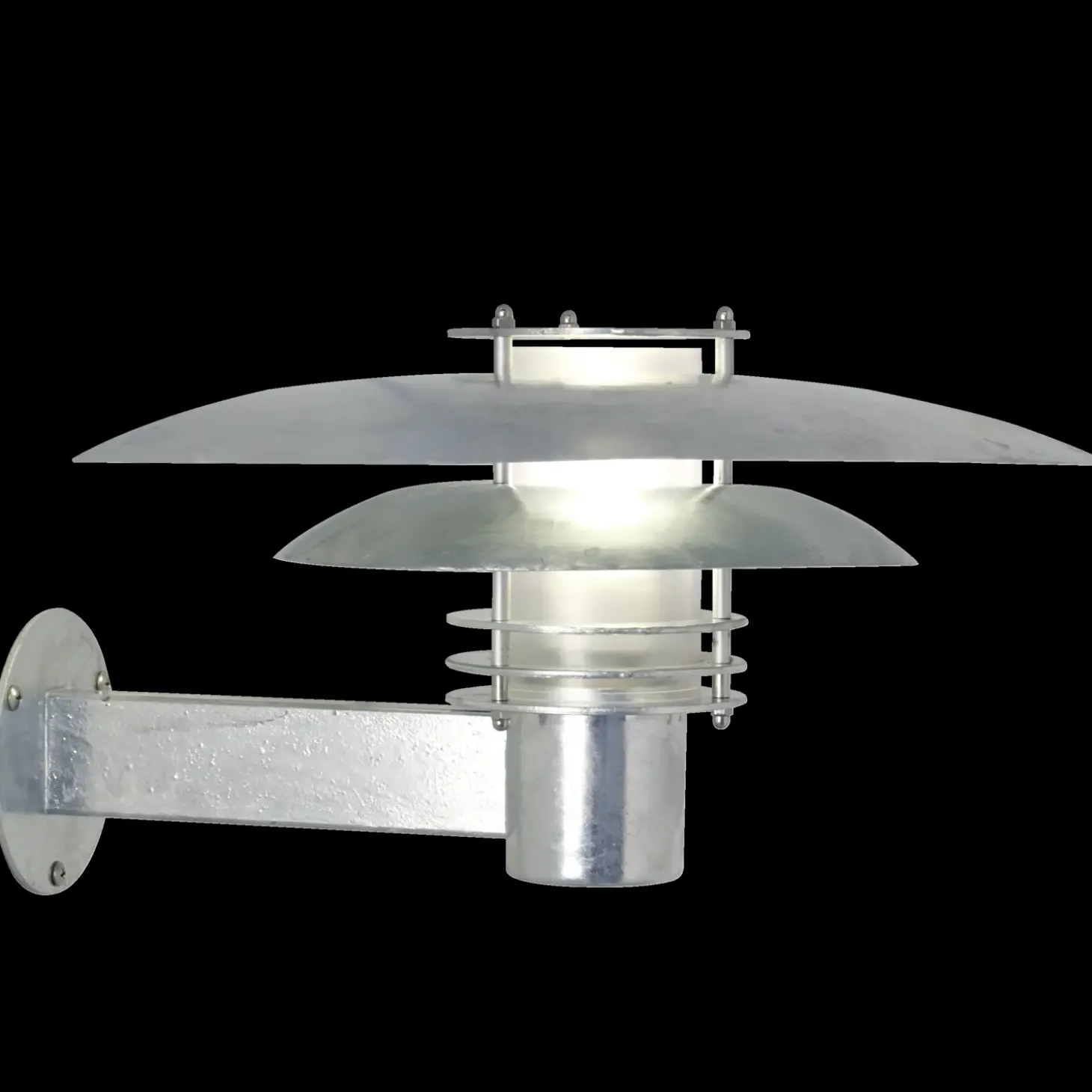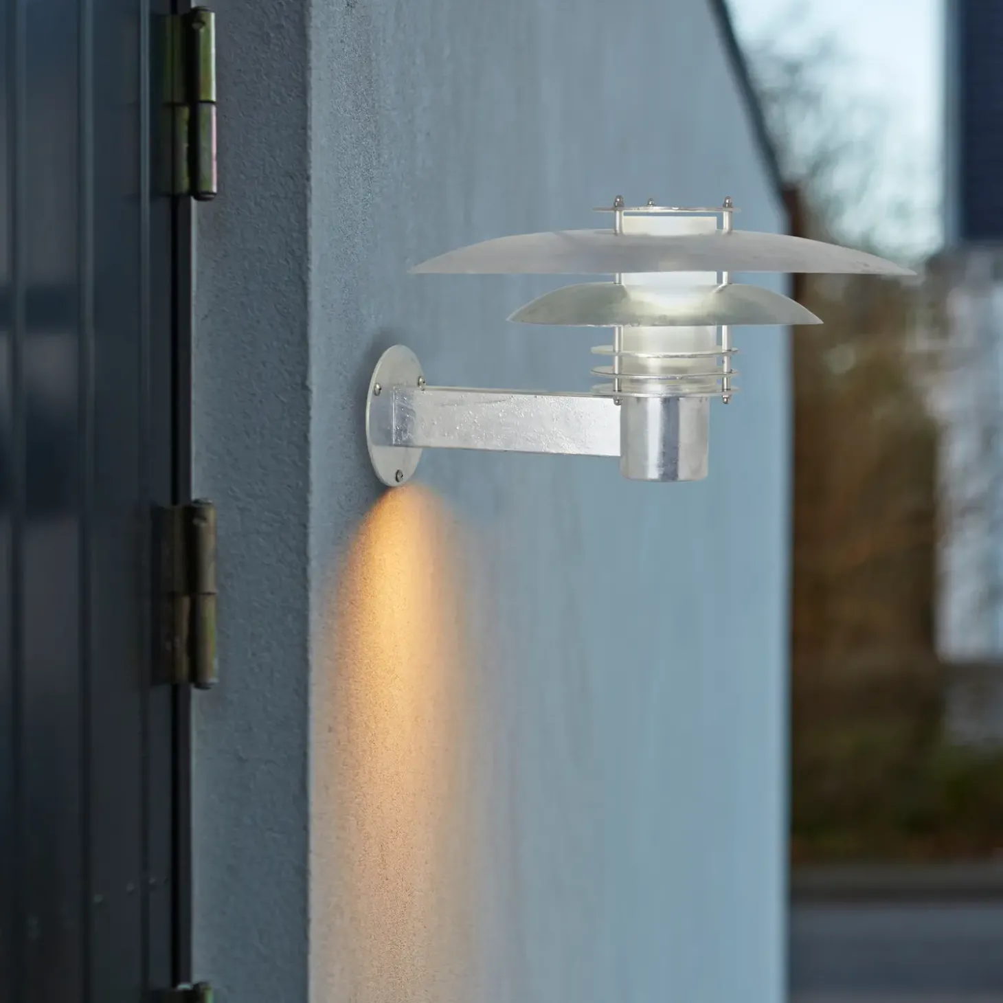 Fremstillet i galvaniseret stål med satineret glasfarve får du en modstandsdygtig udendørs væglampe, der ikke går på kompromis med design. Phoenix væglampen er særlig velegnet til hårdføre omgivelser og det nordiske klima.