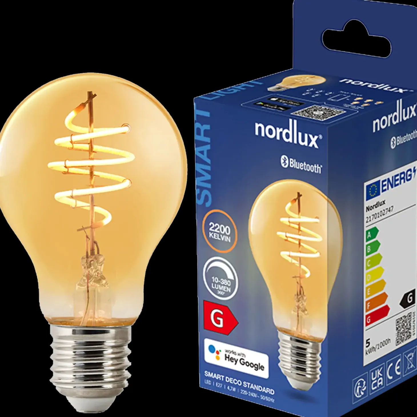 Dekorativ Smart E27-standardpære i ravfarvet og med en croissantformet lyskilde. Det varme hvide lys skaber en hyggelig stemning. Reducer eller øg lysstyrken med din smartphone eller tablet, eller tilføj en smart-fjernbetjening, så du kan styre dit lys uden din smartphone.