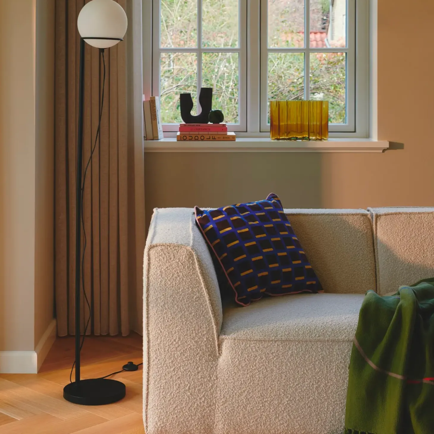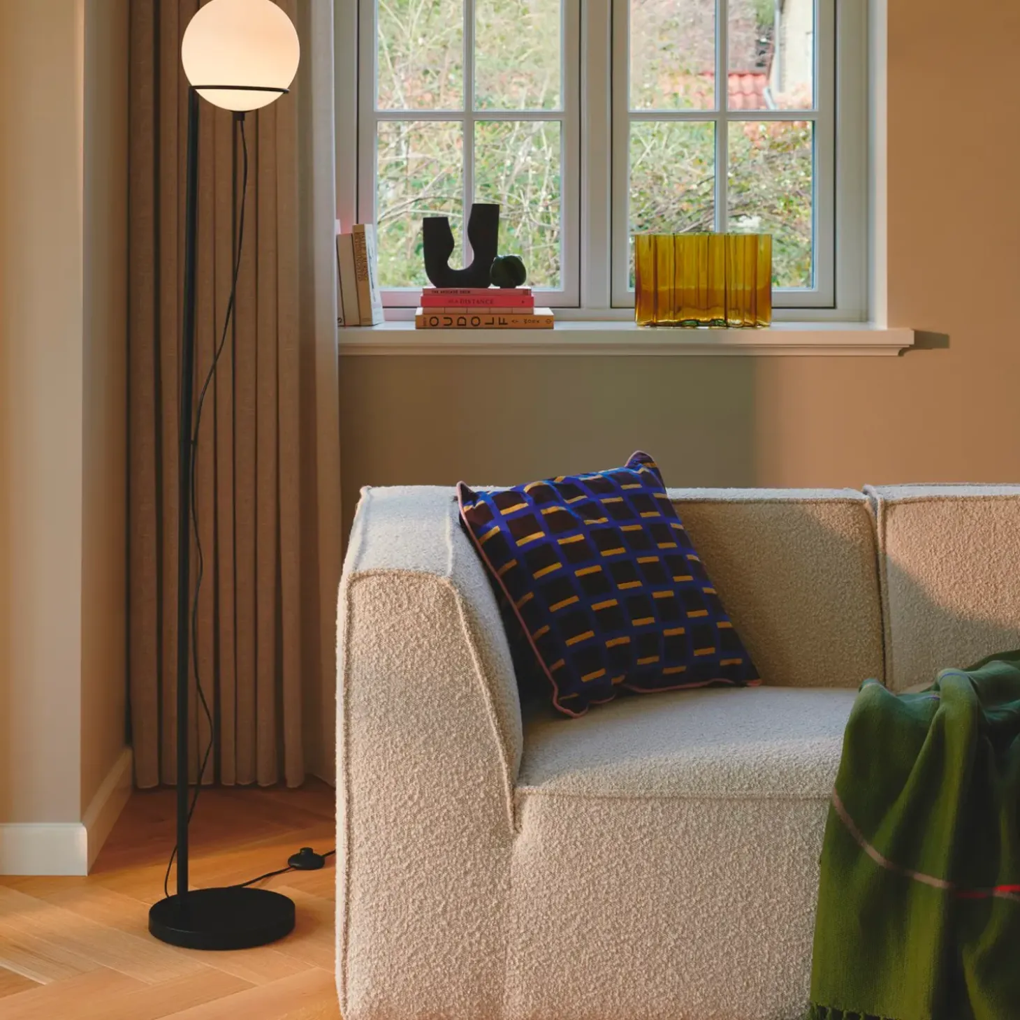 Den moderne Wilson-serie har en elegant sort metalramme, som den runde glasskærm hviler på. Wilson skaber en hyggelig stemning, uanset hvor den placeres og udsender et blødt og blidt lys, der spreder sig i hele rummet. Glasskærmen kan justeres, så den passer til dine behov.