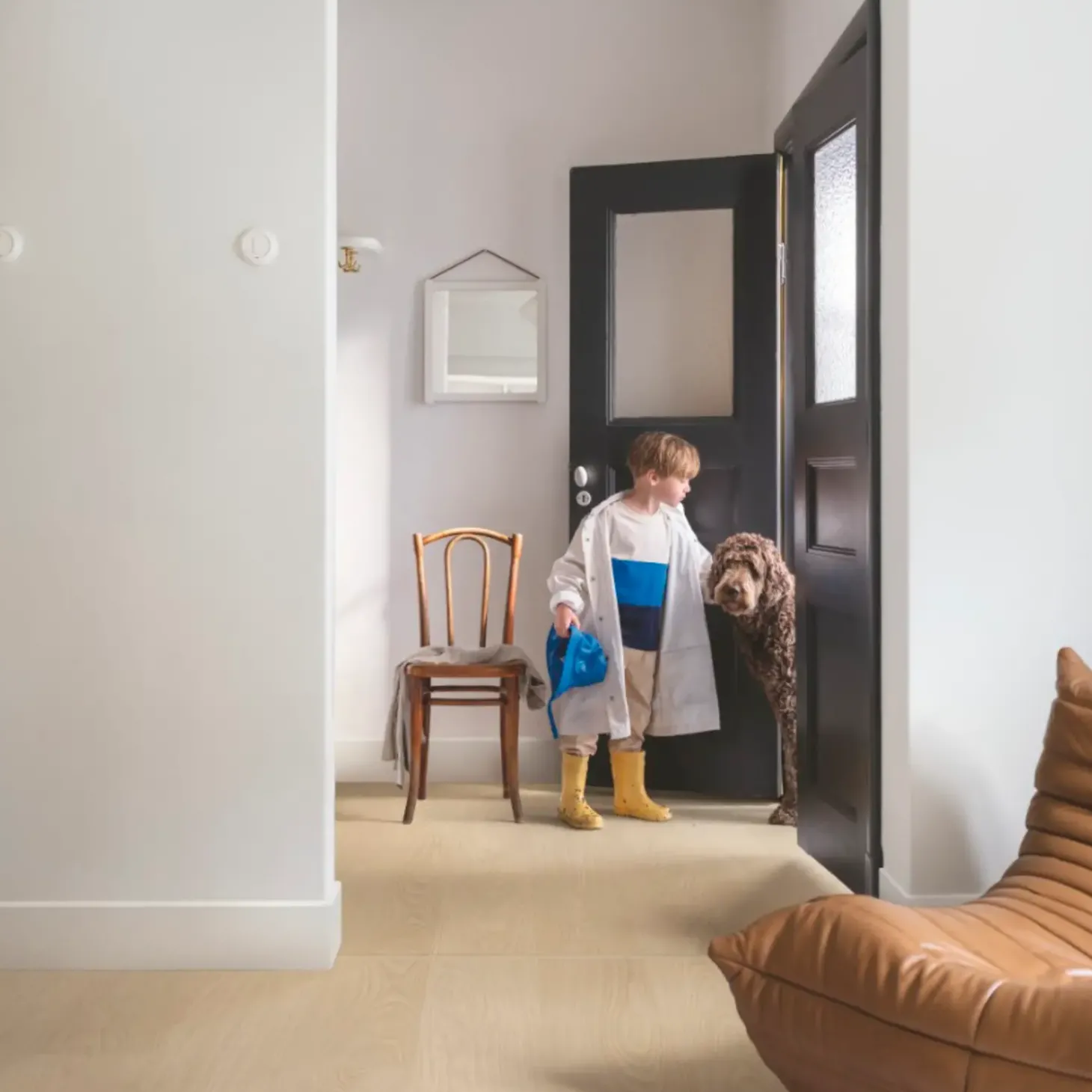 Alle Pergo gulve har AquaSafe, vores egenudviklede teknologi, der skaber en forseglet, 100 % vandtæt overflade hele vejen ned i samlingen. Aquasafe forhindrer vand i at trænge ned i gulvet. Det bliver ganske enkelt på overfladen, og du kan nemt tørre det af.