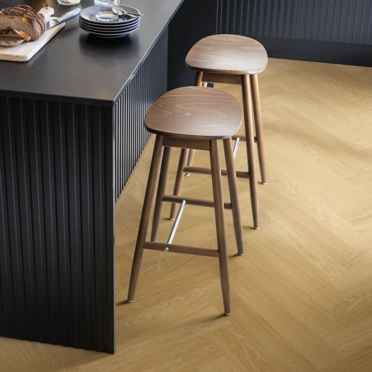 Voxnan pad pro Honey Danish Oak er et roligt og eksklusiv sildebensparket i en varm, honningblød egetræsfarve. De små knaster i egetræ giver gulvet liv, samtidig med at det ser rent og sofistikeret ud. Vinylgulvets raffinerede struktur i børstet træ giver det et meget naturligt udseende og følelse. Plankestørrelsen på Voxnan-sildebensgulvet giver dit rum en følelse af elegance og luksus. Som alle Rigid-vinylgulve er Voxnan blødt og lydløst at gå på, men har alligevel en ekstra stærk kerne og høj modstandsdygtighed over for pletter og slid. Takket være AquaSafe-teknikken har det en vandtæt overflade, hvilket gør det velegnet selv i køkkener og entréer. Voxnan Pad Pro er ekstra hurtigt og nemt at montere takket være det unikke Unizip®-kliksystem og det påsatte underlag.