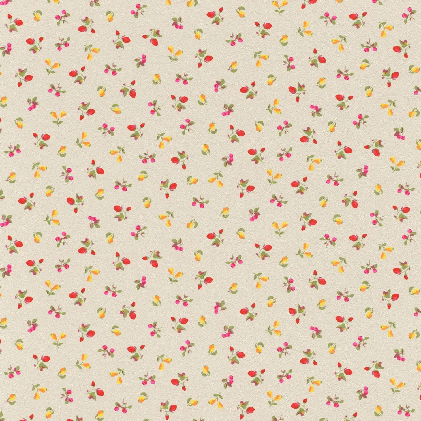 Tapet med frugtmotiv giver en sjov twist til rummet og giver en forfriskende fornemmelse.