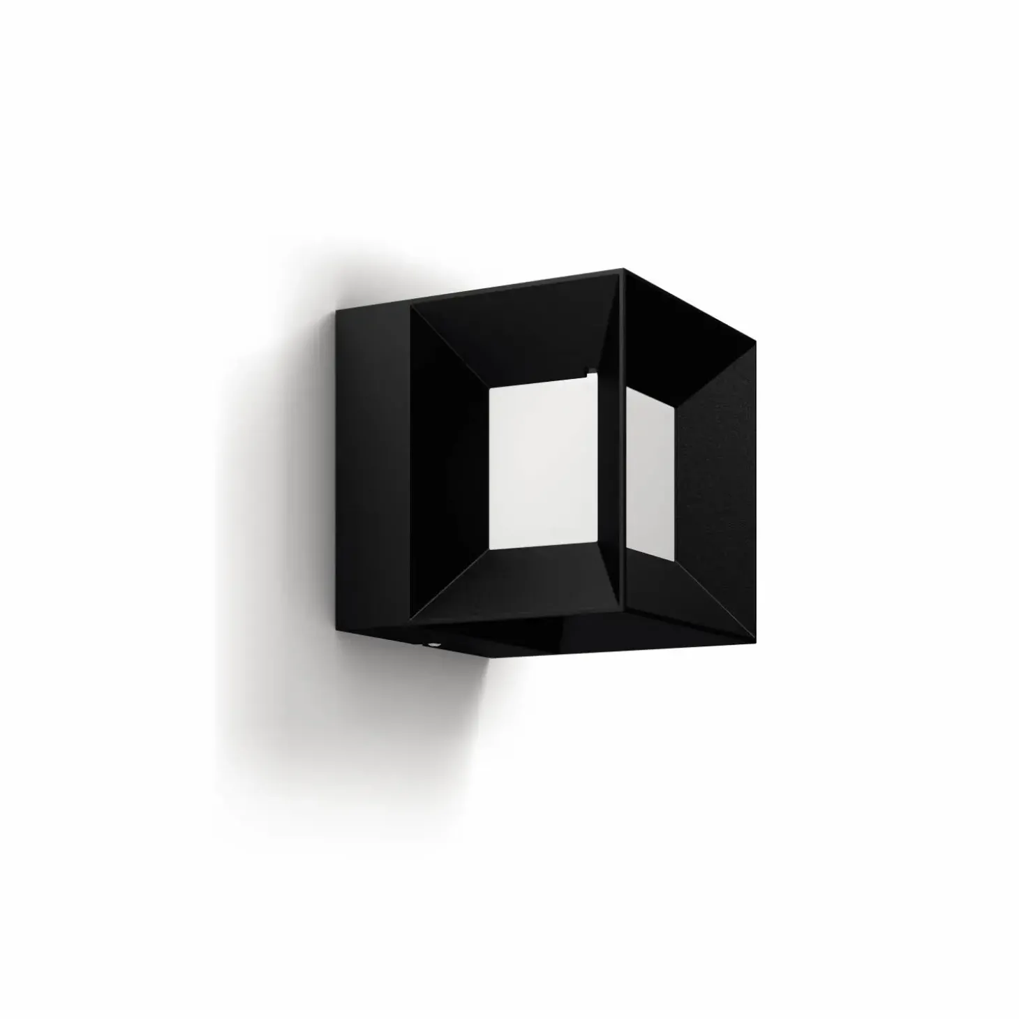 Den sorte Parterre udendørs væglampe er ideel til dig, der søger en lampe, der skiller sig ud og hvor fokus på design og funktionalitet går hånd i hånd. Denne Philips væglampe kan med fordel anvendes stort set alle udendørssteder, som eksempelvis ved hoveddøren og rundt på facaden. Fremstillet i trykstøbt aluminium og med LED får du en energivenlig udendørs væglampe. Den flotte lyskube giver et flot, kraftigt lys på væggen, hvor to effektfulde stråler sender lys ud i alle retninger.