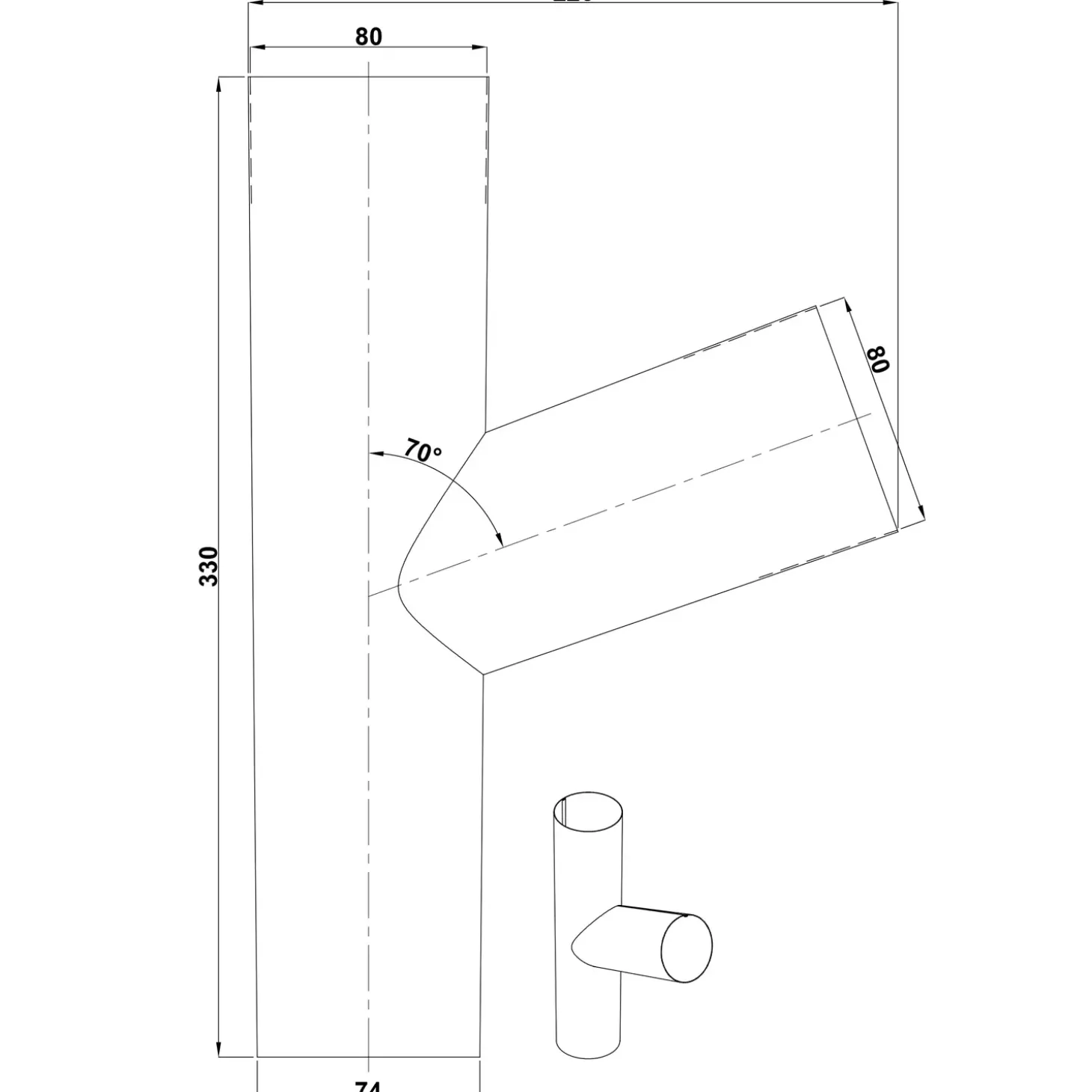 Plastmo grenrør stål 75 mm 70 grader