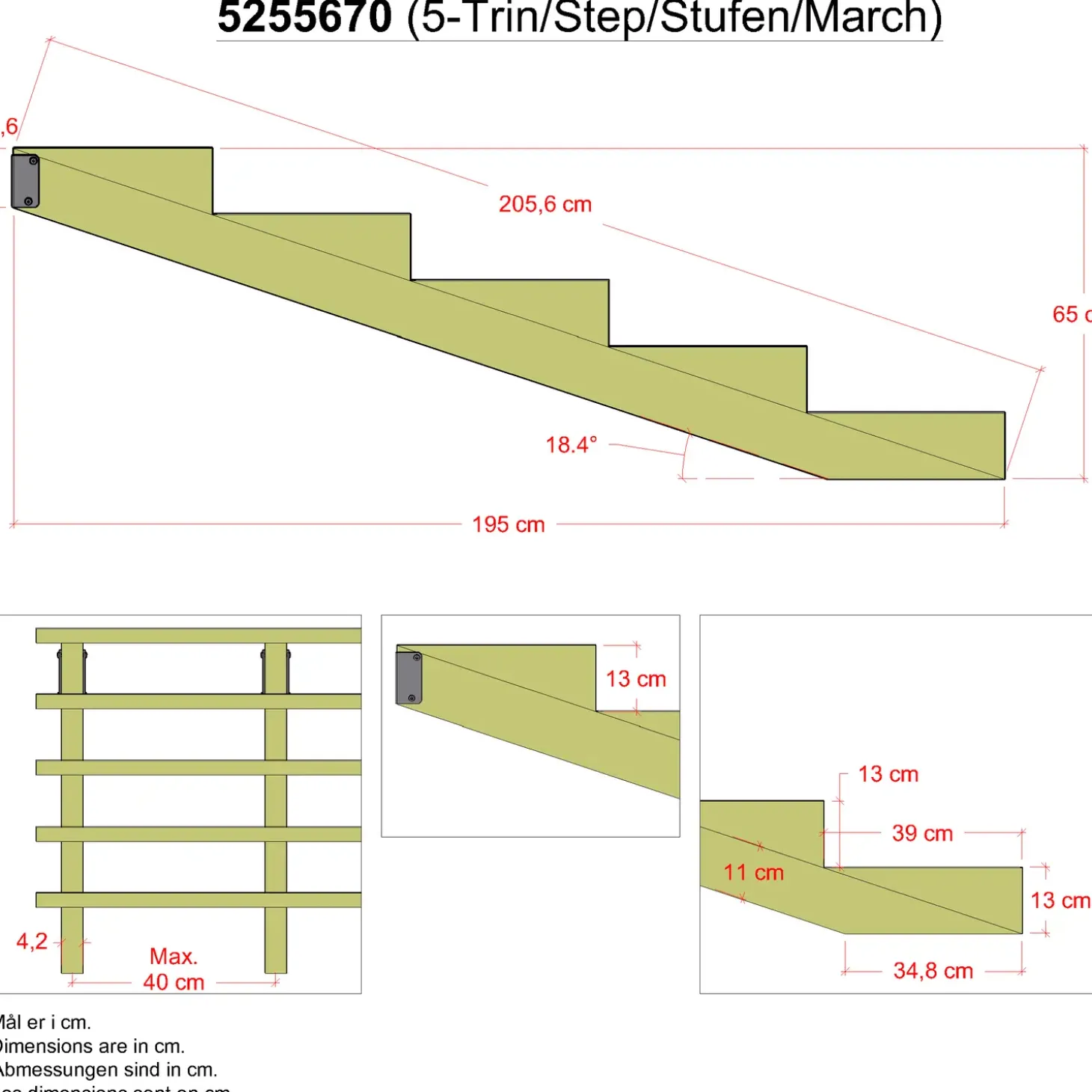 19º Trappevange 5 trin m/beslag – Trindybde 39 cm – 5255670