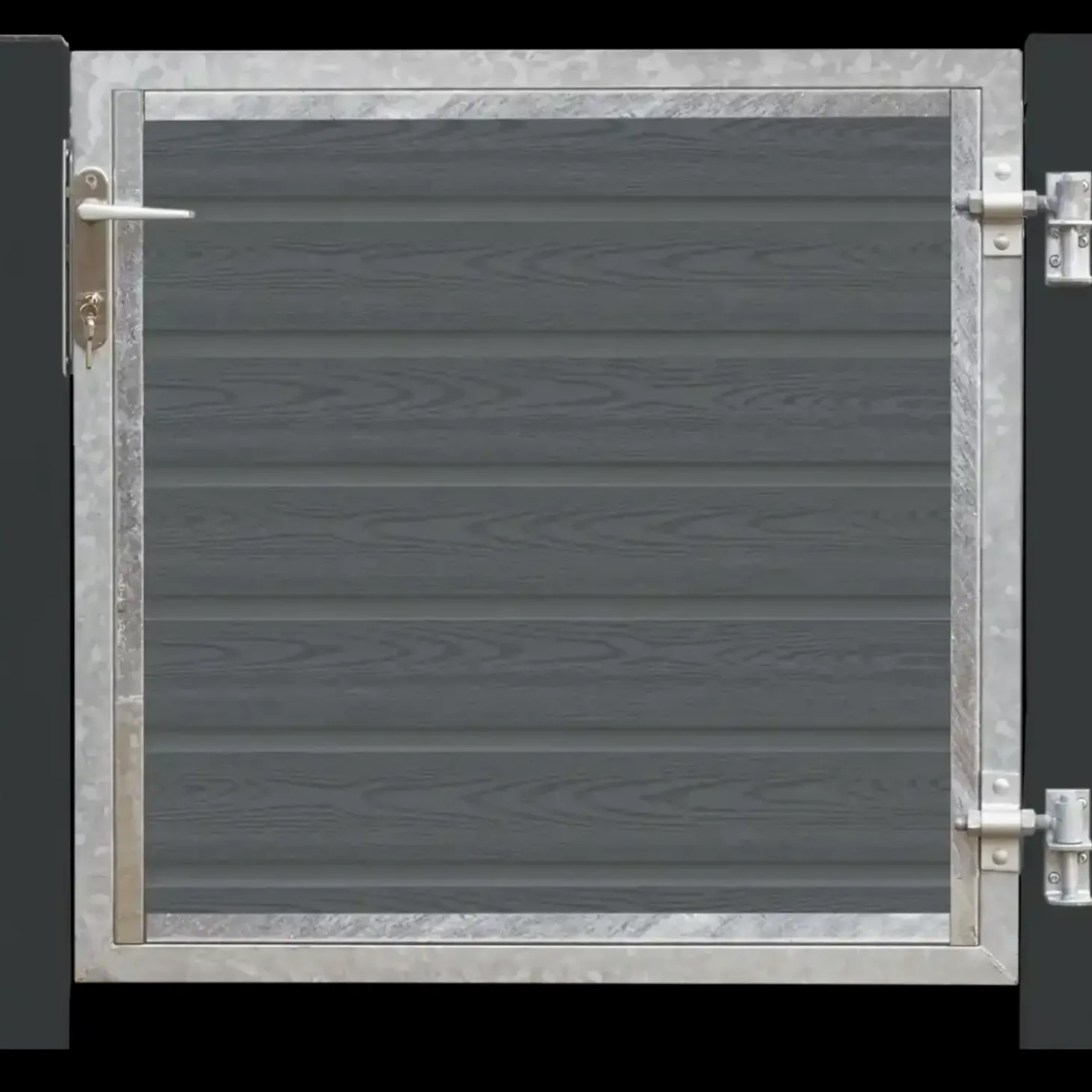 Artura komposit enkeltlåge 115×95 cm højrehængt m/gråsorte stolper til nedstøbning – 17270-21Artura kompositlåge består af skifergrå profilbrædder med træstruktur, som skaber en flot og spændende overflade.Fordelen ved komposit er minimal vedligehold og lang holdbarhed. Brædderne kræver udelukkende afvaskning med vand og almindelig sæbe efter behov, så du slipper for at tænke på slibning og efterbehandling med træbeskyttelse/maling.Forbedret kvalitet og ny strukturVarenr. består af: Komplet enkeltlåge inkl. profilbrædder, stålstolper til nedstøbning, beslag og låsekasse. Leveres færdigsamlet. · Låge: HI – Højrehængt og Indadgående – set fra beslagssiden.· Stålstopler: 8×8×186 cm varmgalvaniseret/pulverlakeret RAL 7021 gråsort.· Lågeramme: 2 mm varmgalvaniseret stål 30×40 mm.· Indvendig liste: 23×30 mm.· Justérbare stabler inkl. bolte. · Komposit skifergrå profilbrædder med struktur 18×145 mm.· Overfladen er præget med mønster og børstet, så den enkelte planke fremstår med et rustikt udtryk.· Farveægthed: Din garanti for, at PLUS produktet holder farven i mange år. Farven vil ændre sig max. 10%.· Materiale:Polypropylen PE: 35%.Træ: 50%.Øvrigt: 15%. · Inkl. rustfri låsekasse m/3 nøgler, 4-stiftet cylinder og tilbehør.· Cylinderen kan udskiftes til Ruko – forhør hos din forhandler.