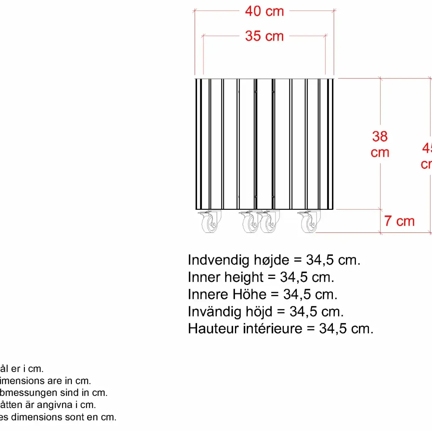 Circle plantekasse – Ø40/45 cm – 18370-4Elegant og praktisk plantekasse med hjul, som er ideel til både blomster, planter, grøntsager og krydderurter.Det enkle design med lodrette trælister passer perfekt ind i tidens trend og har et naturligt look, som skaber en hyggelig atmosfære.Med Circle plantekasser er det nemt at skabe en hyggelig oase eller en lille køkkenhave på altanen, terrassen eller ved indgangspartiet.Kasserne er ideelle både til en lille altan og en stor terrasse, og de fleste planter, blomster, grøntsager og krydderurter trives fremragende deri.Med Circle plantekasser kan du undgå ømme knæ og passe dine planter i en god arbejdsstilling. Kasserne er samtidig ideelle til ruminddeling og som afskærmning på altanen og terrassen.Lister:19×45 mm.Fungicidbehandlet og grundmalet sort 2 gange.Nærmeste RAL 9005 – vandbaseret.Leveres færdigmonteret på bånd.Stål – top/bund:Galvaniseret og pulverlakeret stål.Sort RAL 9005.Hjul:Ø50 mm – 4 stk. med stop (bremselås).Højde på plantekasse: – med hjul 45 cm.- uden hjul 38 cm.Inkl. rund PE-plantepose (sort).Leveres som “Saml selv”.
