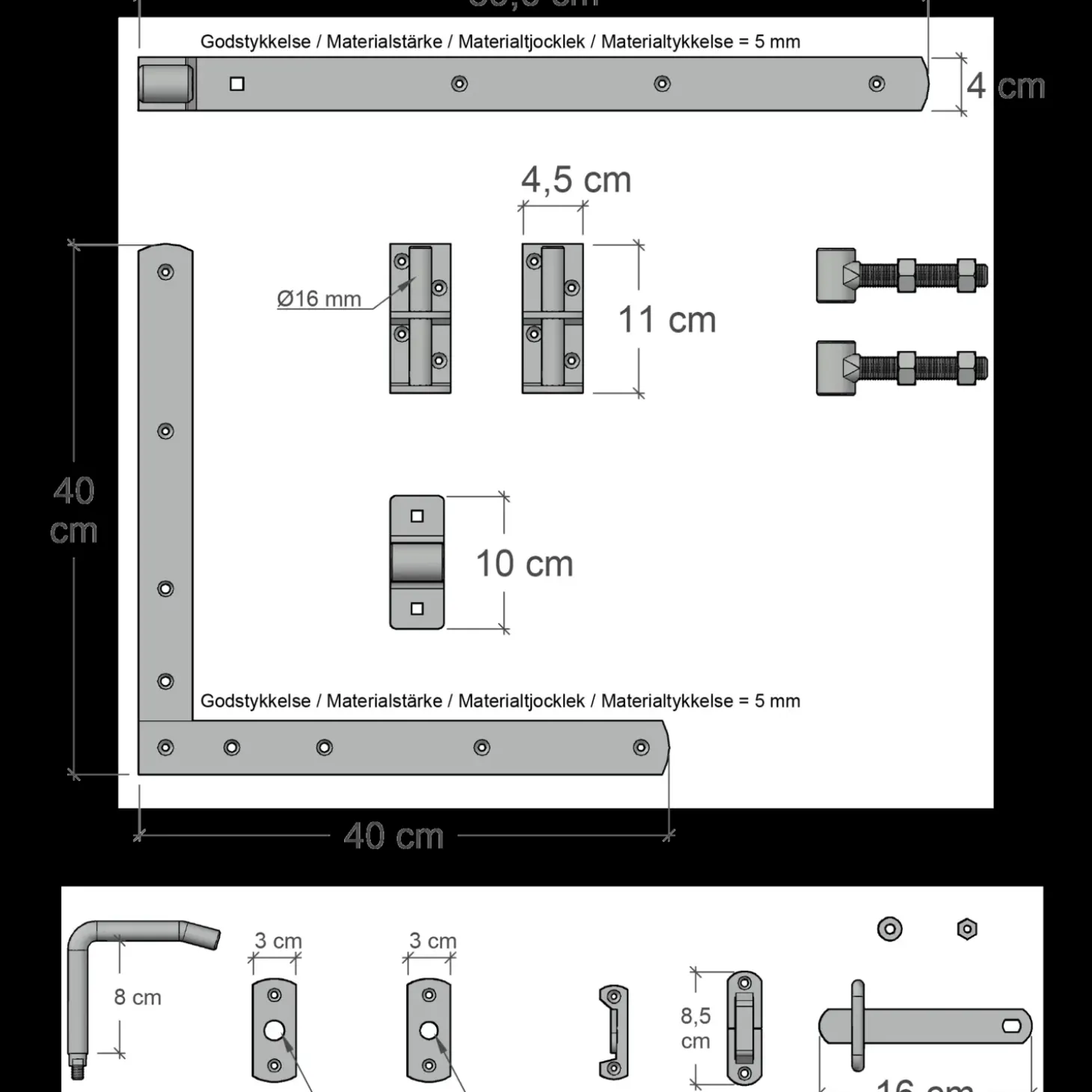 - Vær opmærksom på at, modulet sælges inkl. lågebeslag, bolte og skruer til montering af havelågen.