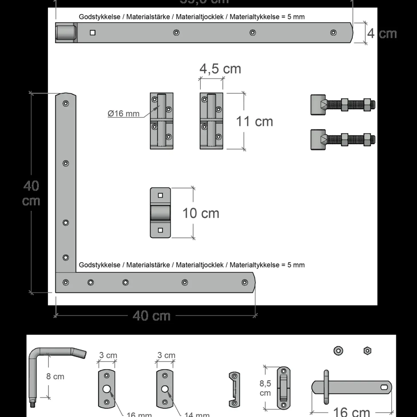 - Vær opmærksom på at, modulet sælges inkl. lågebeslag, bolte og skruer til montering af havelågen.