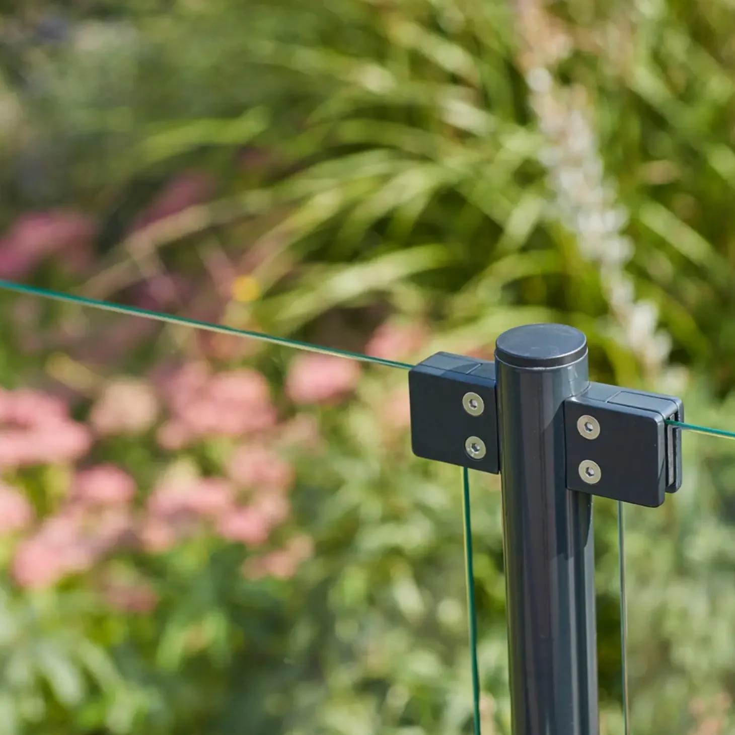 Glasbeslag fra Plus der kan anvendes til runde stolper.