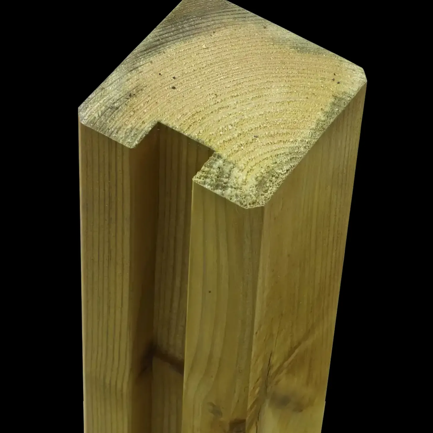 Krydsskåret profilstolpe – 1 spor 9×9×188 cm – 27719-1 – PEFCNår du vælger krydsskårede stolper, får du en certificeret stolpe, der er produceret af fyrretræ – trykimprægneret NTR mærket klasse A, hvilket betyder, at den er beregnet til nedgravning. Stolpen er krydsskåret af en stor stamme, så den består af mest muligt kernetræ. Det sikrer, at stolpen bliver så stabil som mulig og at der sker mindst mulig krumning.· Spor: bredde 30 mm – dybde 17 mm· Afskåret lige begge enderPLUS’ krydsskårne profilstolper er produceret af nordisk fyrretræ, trykimpræneret NTR mærket klasse A.Det betyder, at den er effektivt beskyttet mod råd og tåler nedgravning. Stolpen er af krydsskåret træ og med affasede kanter.Anvendes til:PLUS Klink Profilhegn og PLUS Plank Profilhegn.