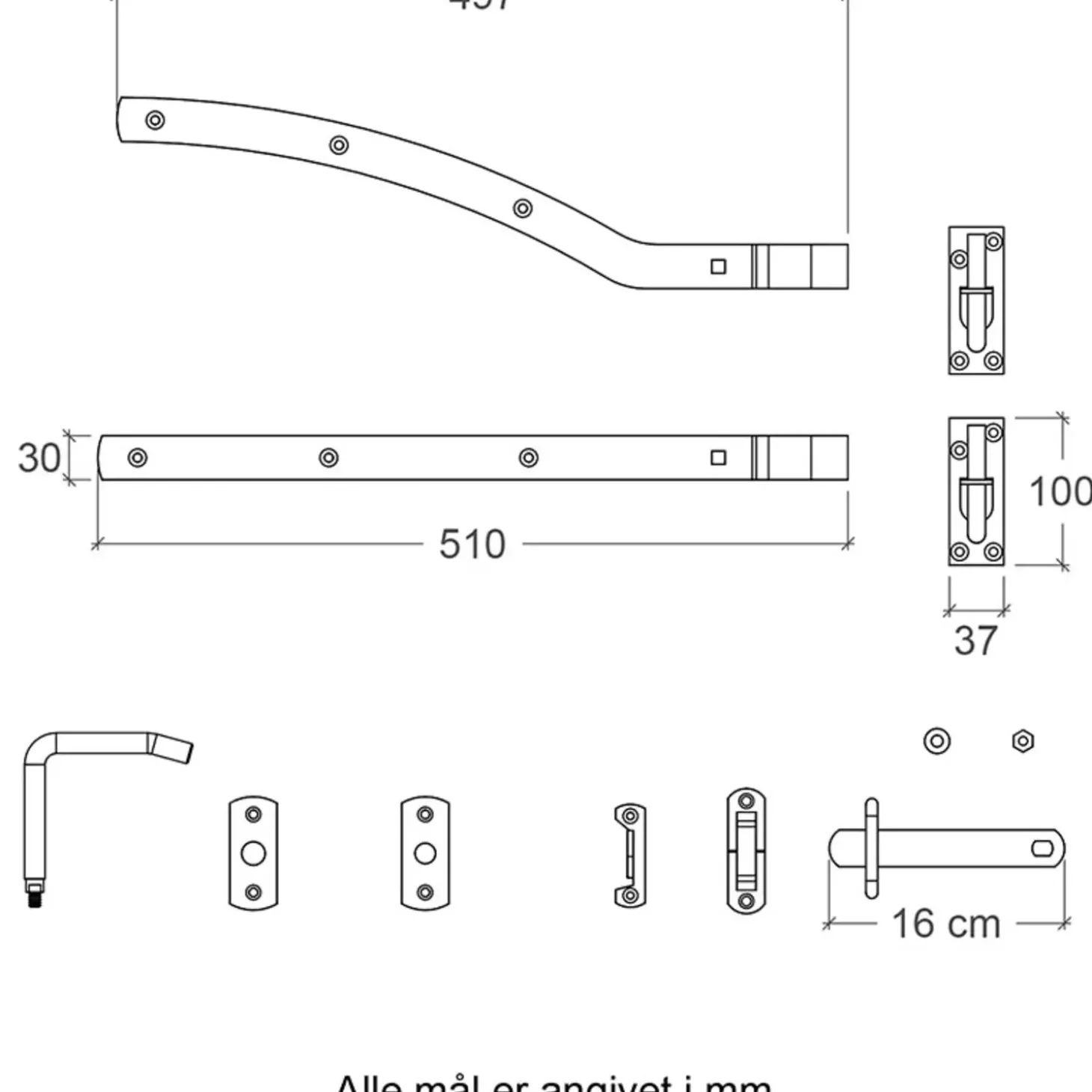 Komplet lågebeslagsæt fra Plus til enkeltlåge