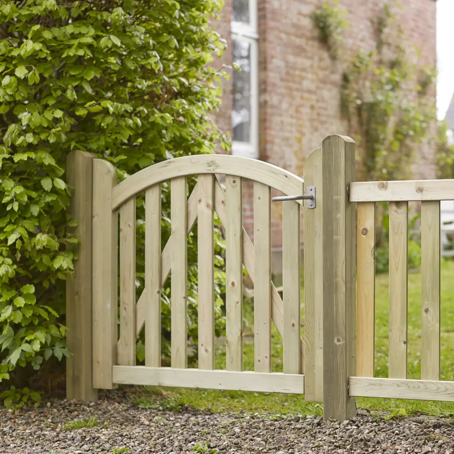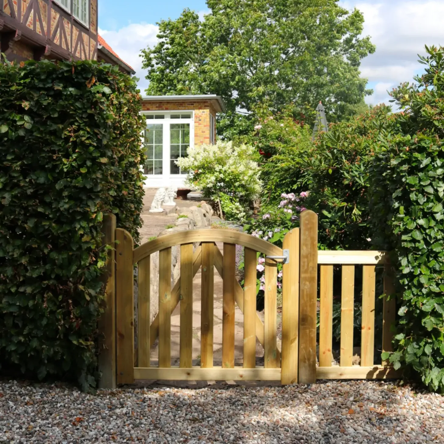Pryd forhaven med Plus Ligno elegante havelåge, der giver et roligt og enkelt udtryk. Indram haven eller indkørslen med Plus Ligno havehegn og låge, og lad børnene og hunden boltre sig et trygt sted.