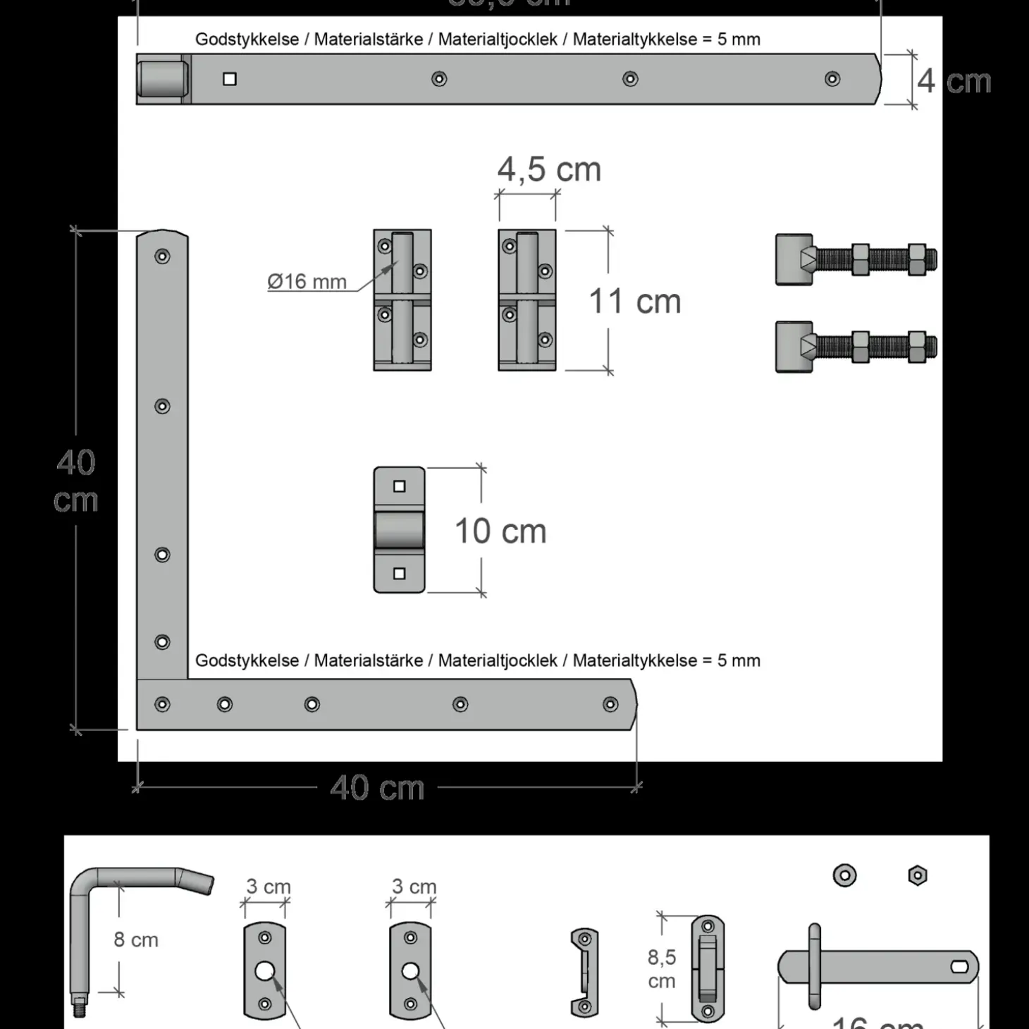 - Vær opmærksom på at, modulet sælges inkl. lågebeslag, bolte og skruer til montering af havelågen.