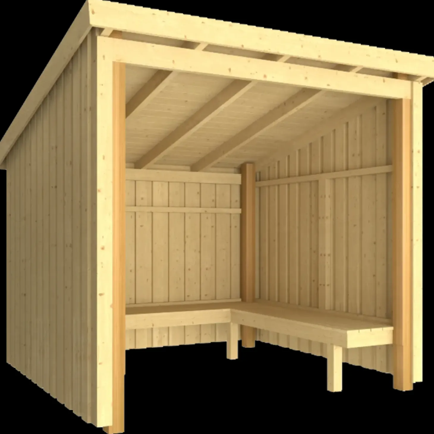 Nordic Bålhytte 1-modul åben inkl. beslag/skruer og bænk. Ekskl. tagpap/alulister og H-stolpefødder.