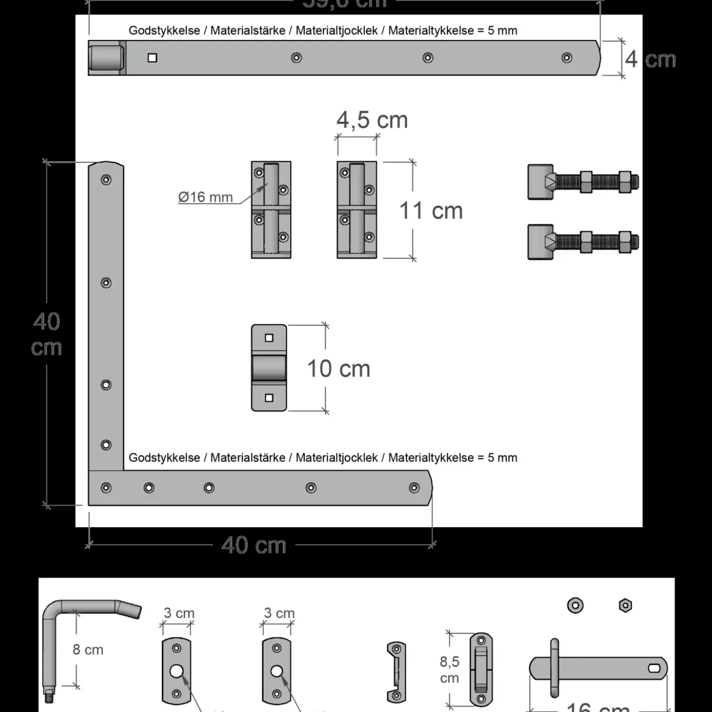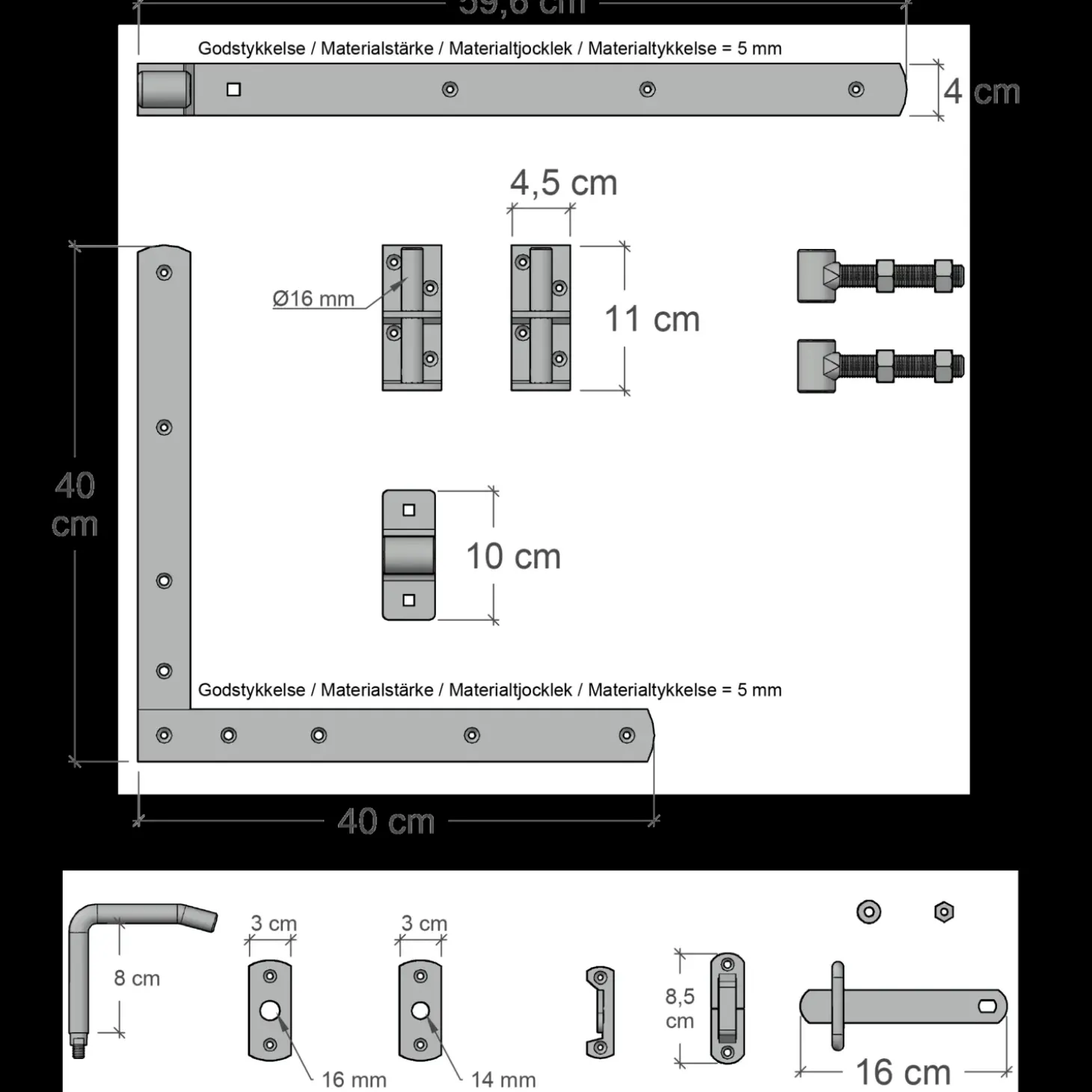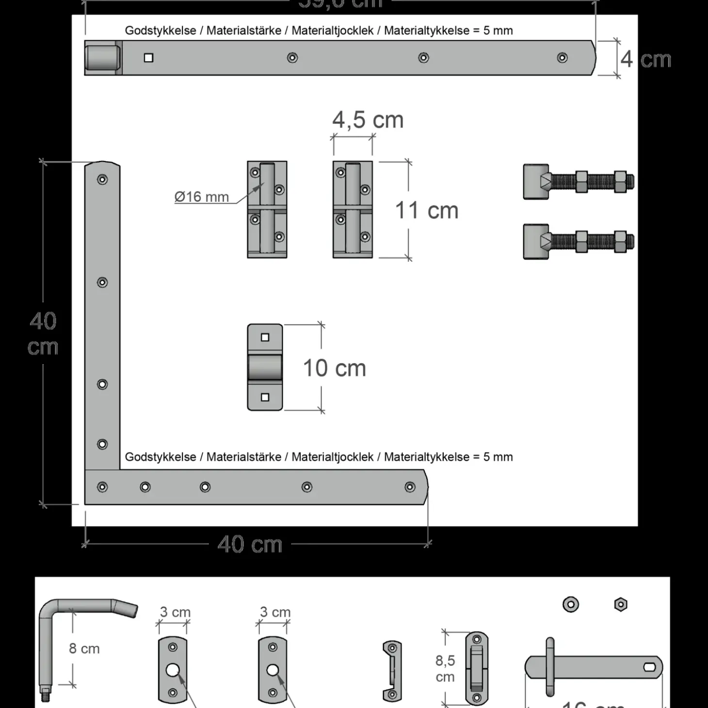 Plus Osaka enkeltlåge inkl. beslag 100×93 cm sort