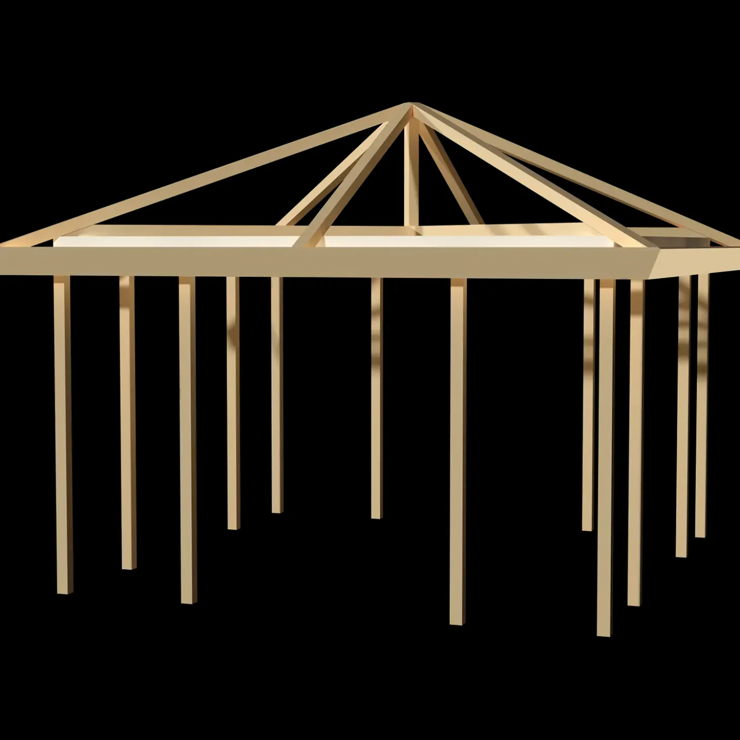 Trykimprægneret høvlet og krydsskåret nåletræ. Leveres som komplet byggesæt.