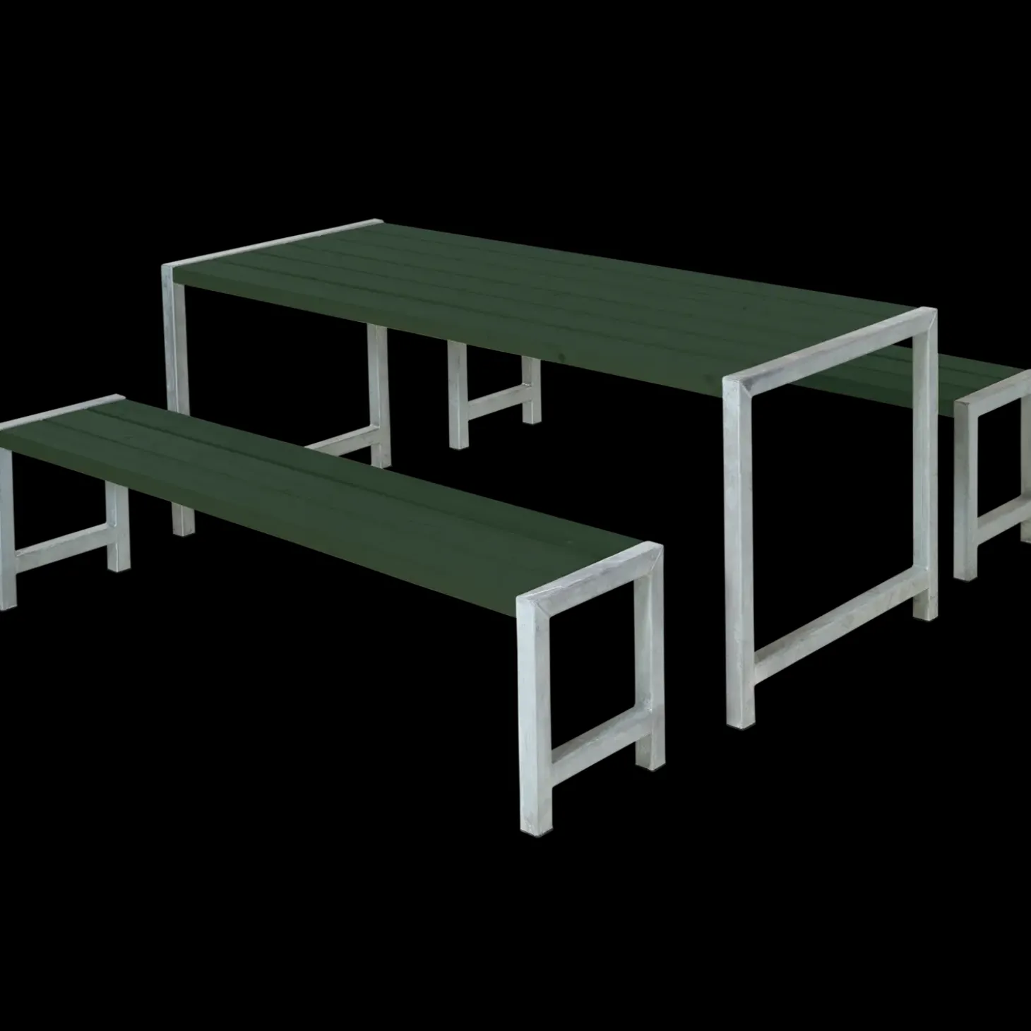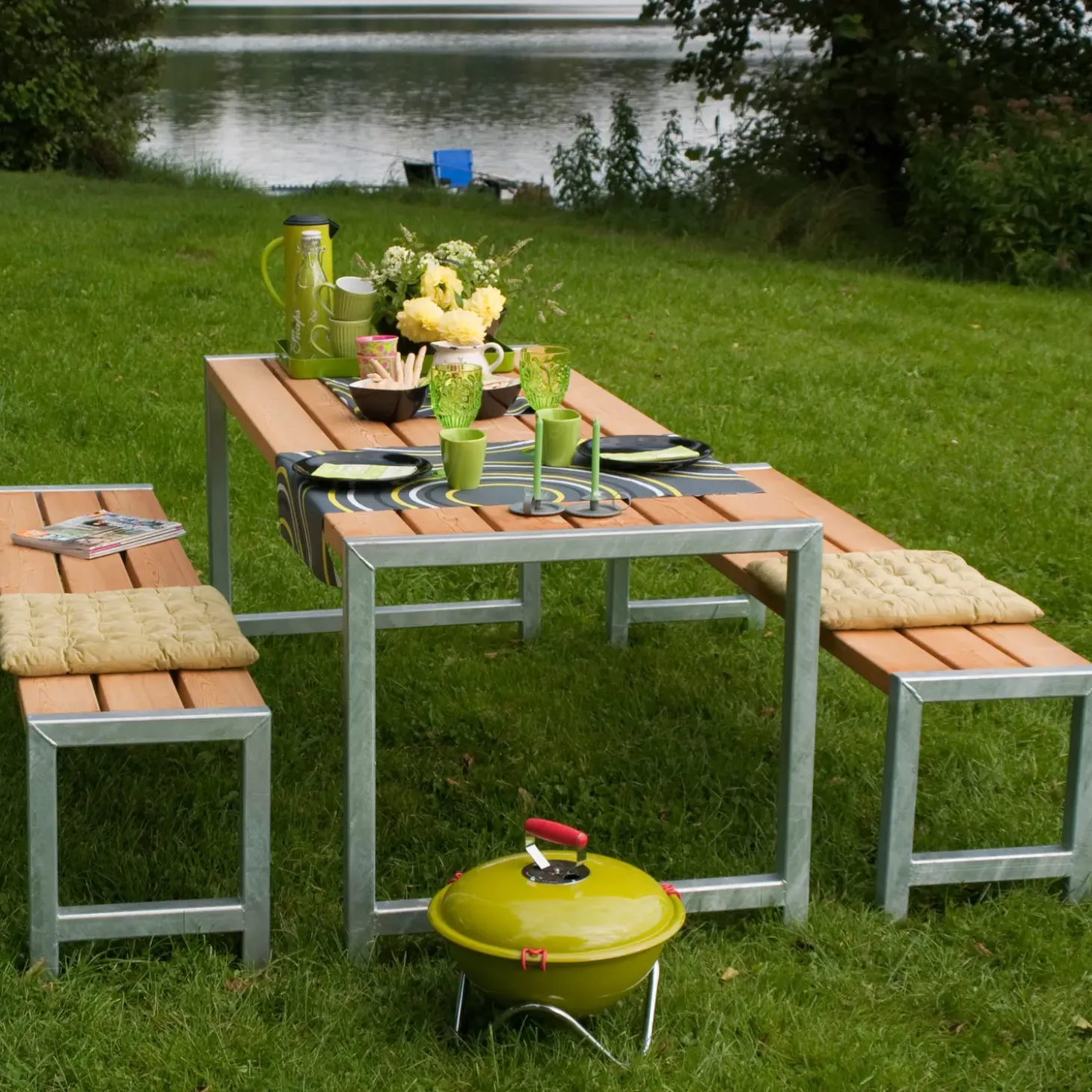 Dette bord/bænkesæt indbyder til at samle familien, rundt om det bordet. Her kan rammerne skabes for de hyggelige sommer stunder på terassen, hvor det firkantede bord/bænkesæt indbyder til snak og grin på kryds og tværs af bordet.