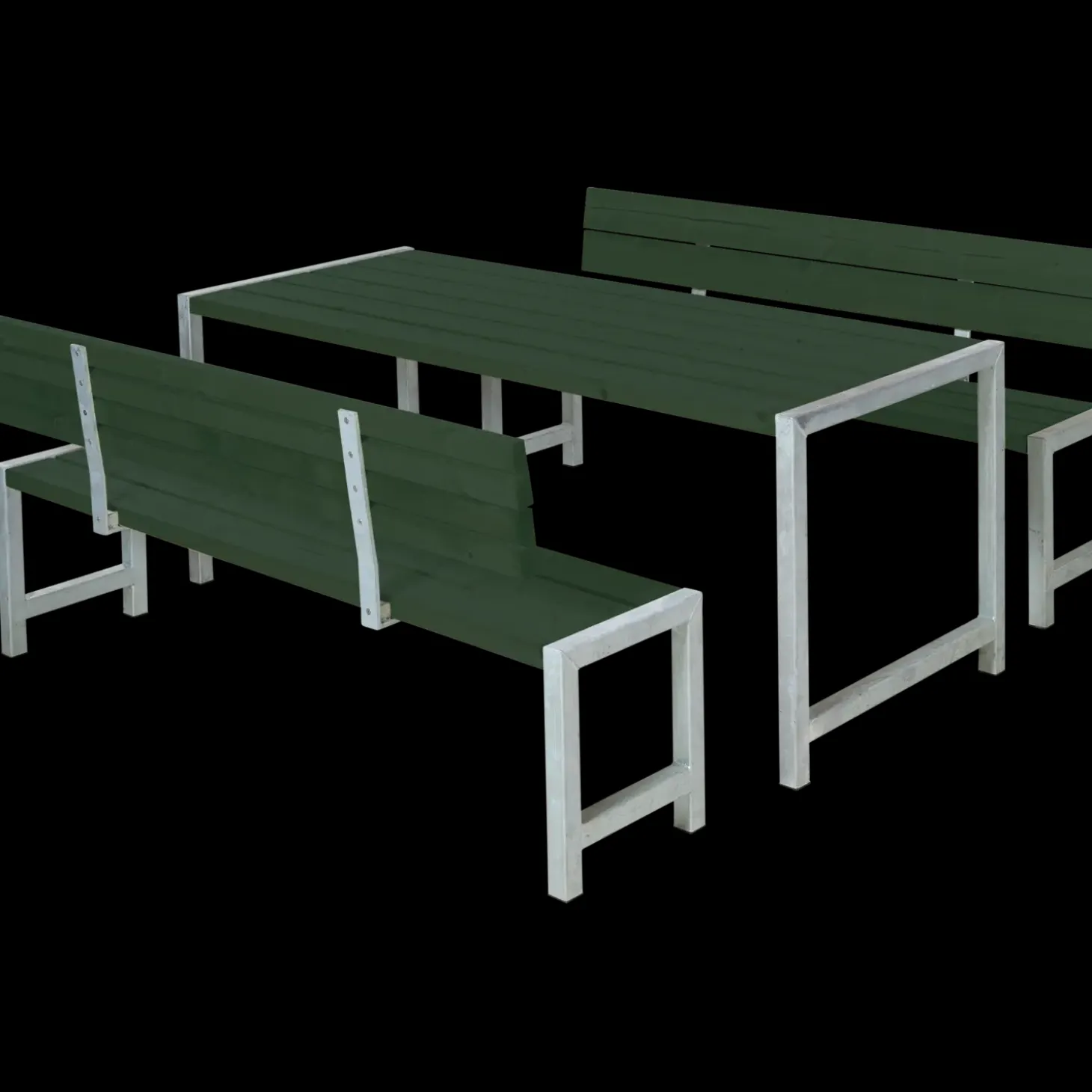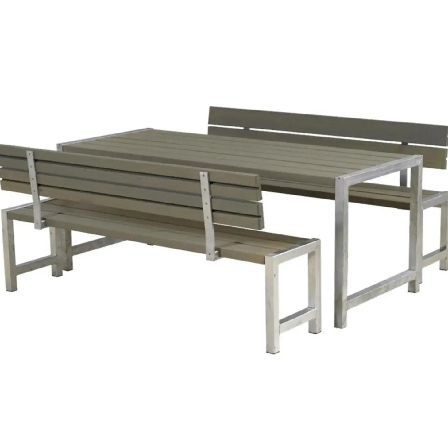Dette bord/bænkesæt indbyder til at samle familien, rundt om det bordet. Her kan rammerne skabes for de hyggelige sommer stunder på terassen, hvor det firkantede bord/bænkesæt indbyder til snak og grin på kryds og tværs af bordet.