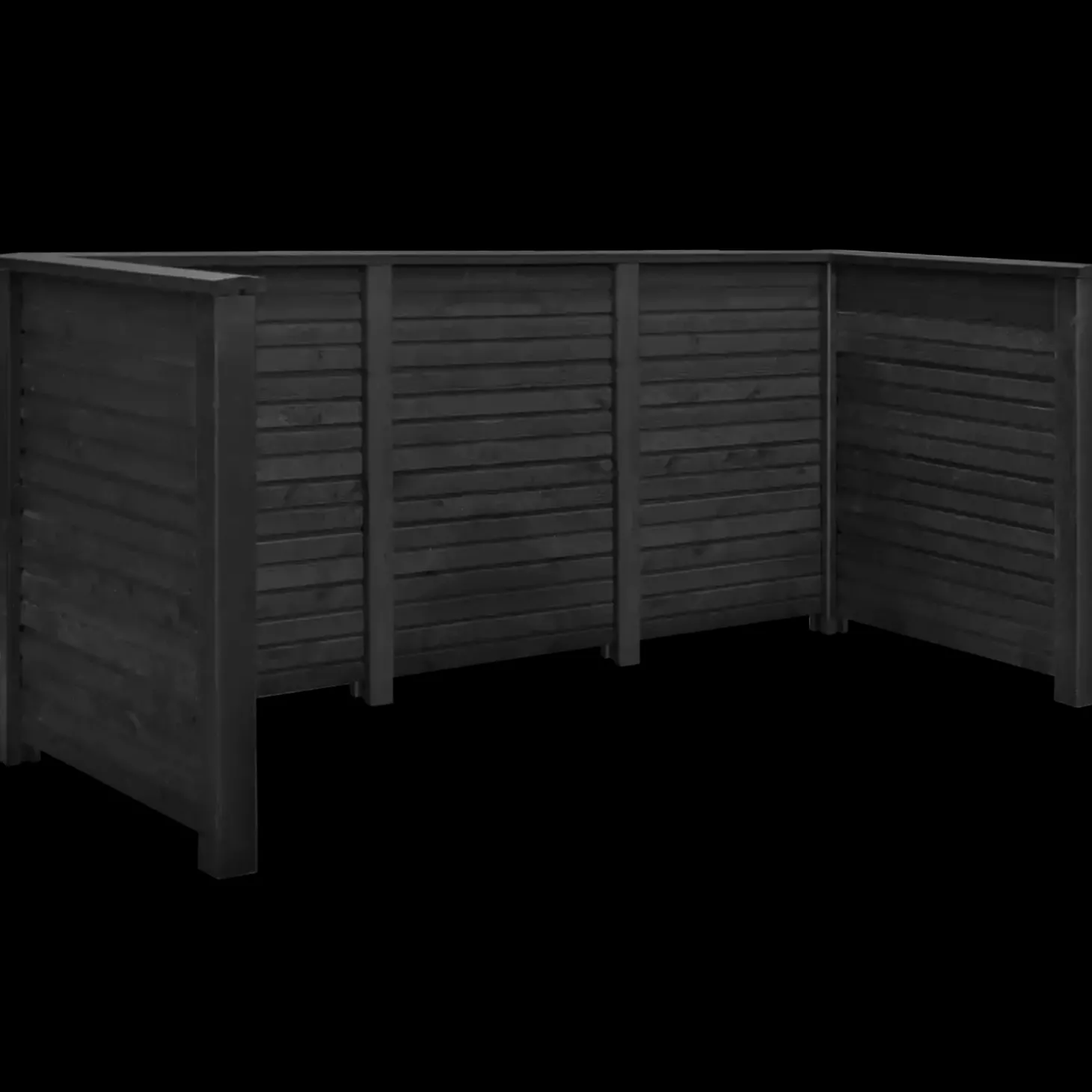 Renovationsskjul Plank Profil – sort – m/træstolper til nedgravning – PEFC – 266201-15Renovationsskjulet vil ikke kun skjule dit skrald med stil, men også pynte på din indkørsel. Der findes ikke noget kedeligere, end at synet af de grå eller grønne kedelige skraldespande. Løsningen er et skraldespandsskjul, som gemmer dine skraldespande lidt væk, så det ikke er det første gæsterne møder, når de kører ind ad indkørslen.Plank Profil renovationsskjul er bygget op af hegnselementer fra Plank Profil hegnsserien, hvilket giver dig mulighed for at bygge videre på renovationsskjulet, så det passer til netop dit behov og ønsker.Varenr. består af:Renovationsskjul med plads til 3 spande (mål 58×107,5 cm / 240 ltr.). Inkl. skruer.Sider:· Profilbrædder m/1 spor 25×140 mm· Savskåret og høvlet· Inkl. skruer og topbræt til afslutning· Monteres direkte i stolpen· Trykimprægneret og grundmalet sort· Sort RAL 9005Stolper:· Grundmalet krydsskårne profilstolper m/spor 9×9 cm – til nedgravning· Trykimprægneret NTR mærket klasse A, hvilket betyder, at de er effektivt beskyttet mod råd og tåler nedgravningLeveres som “Saml selv”.Byg selv efter ønsker og behov