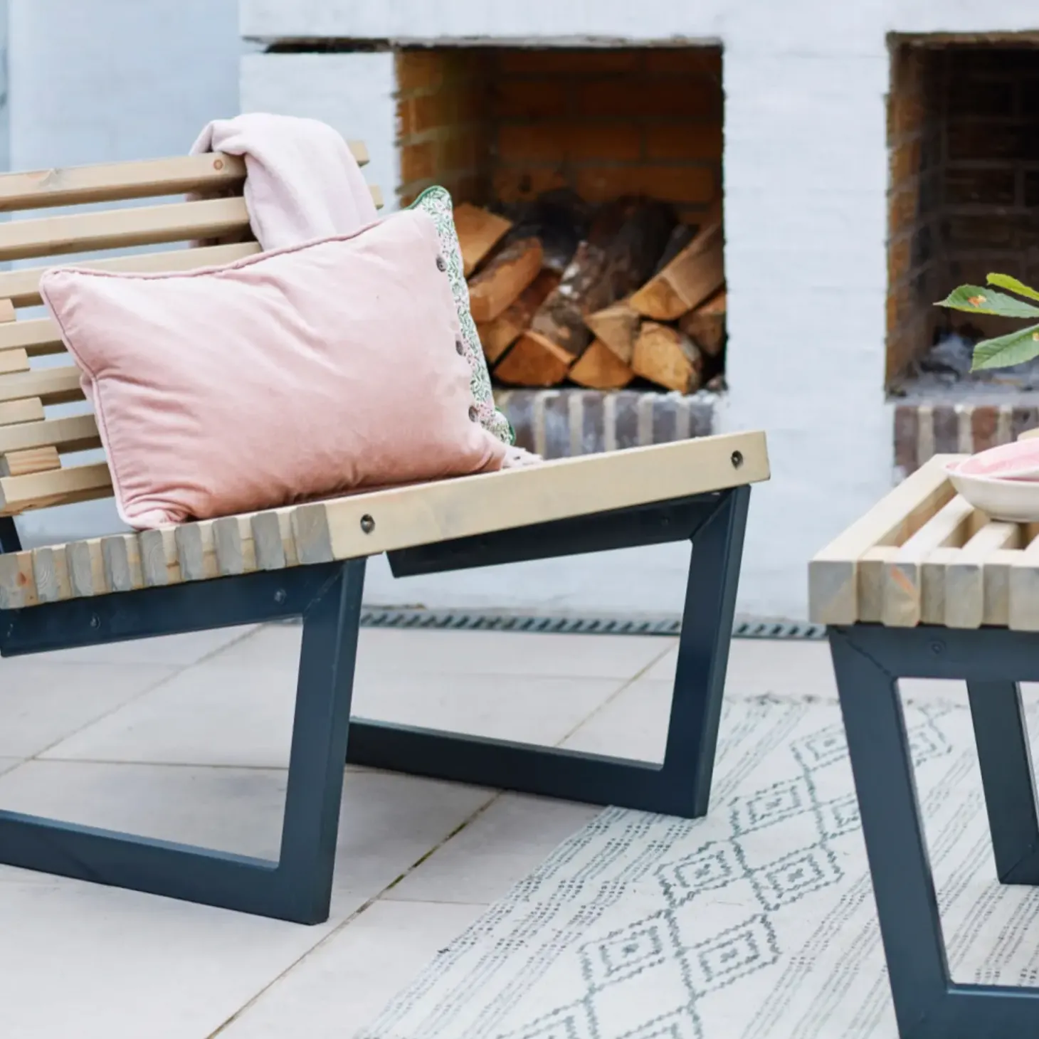 Med Siesta Trallestol, fremmstillet af mærkede traller i drivtømmerfarve, får du en rustik stol der skaber råhygge på varme sommeraftener. Til stolen findes også en matchende stol og bænk/bord samt hynder.